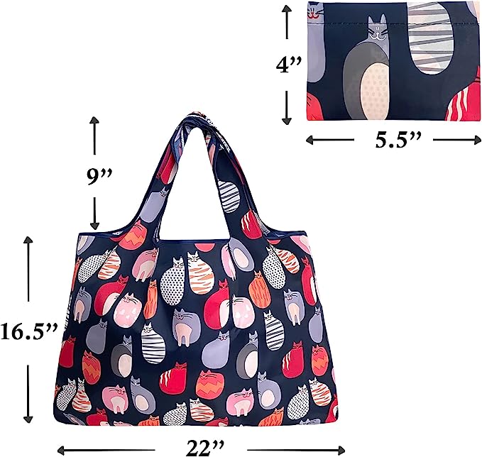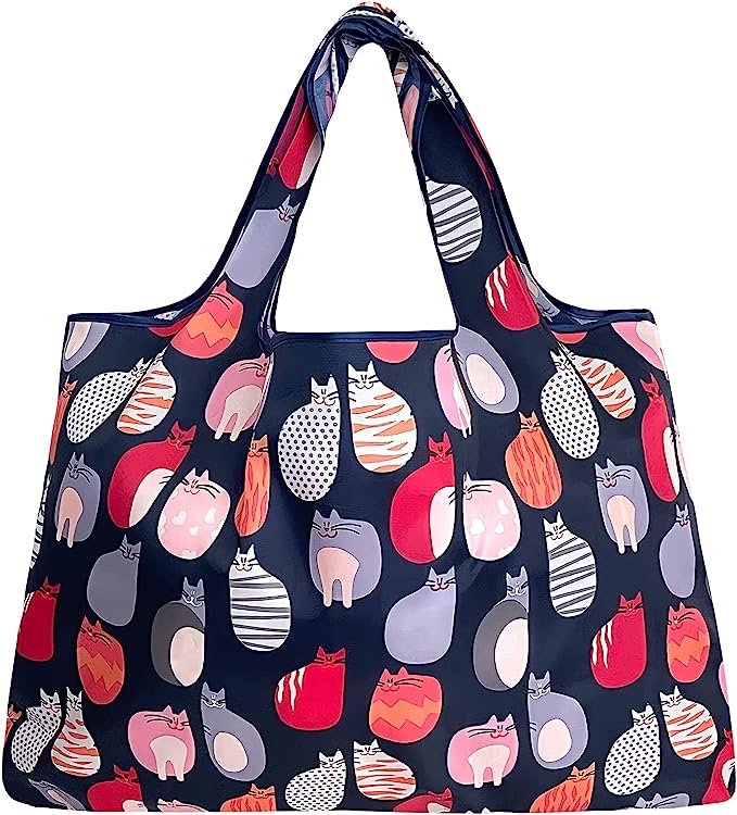 Wrapables Large Foldable Tote Nylon Reusable Grocery Bags, 3 Pack