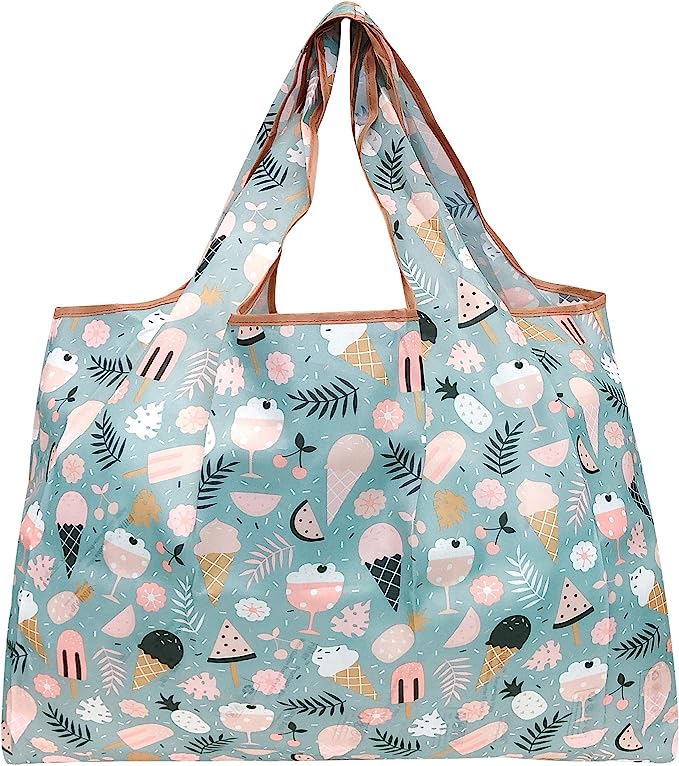 Wrapables Large Foldable Tote Nylon Reusable Grocery Bags, 5 Pack