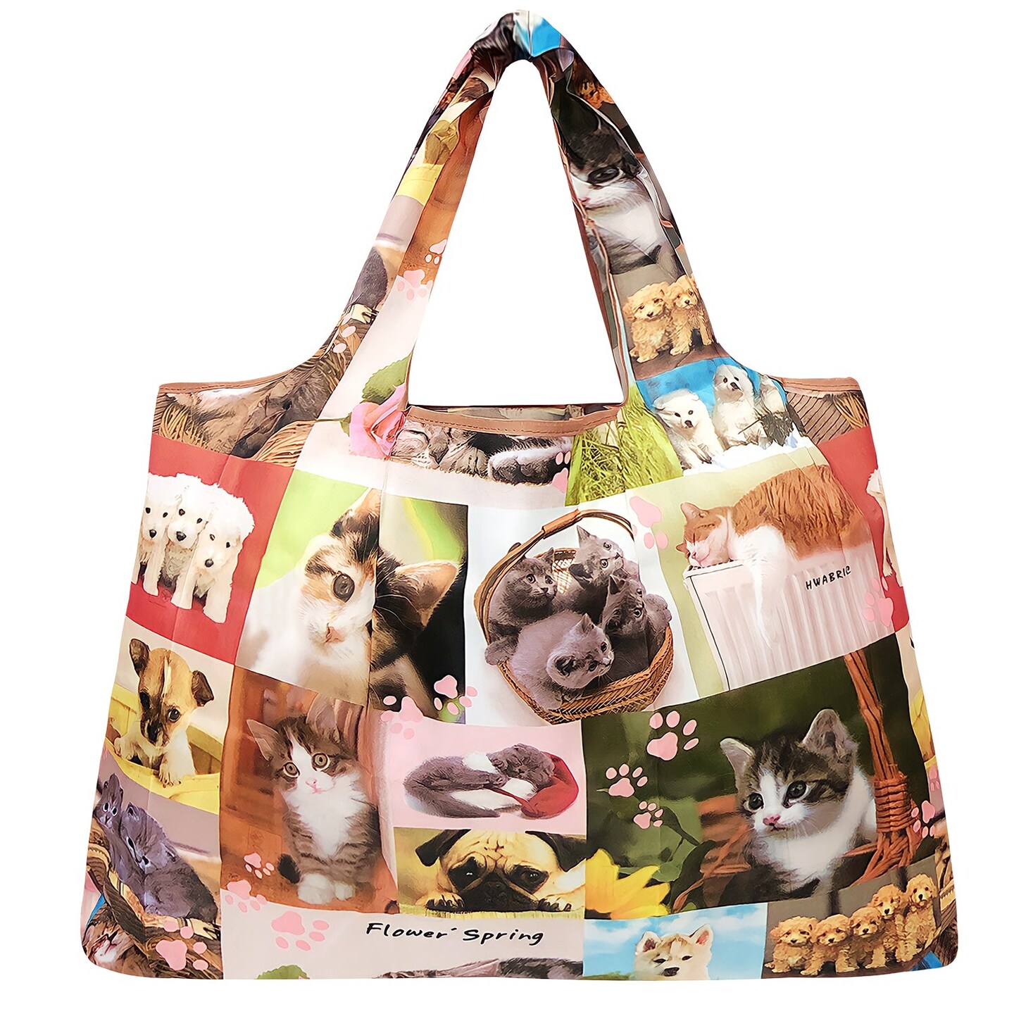 Wrapables Large Foldable Tote Nylon Reusable Grocery Bags, 6 Pack, Precious Pets