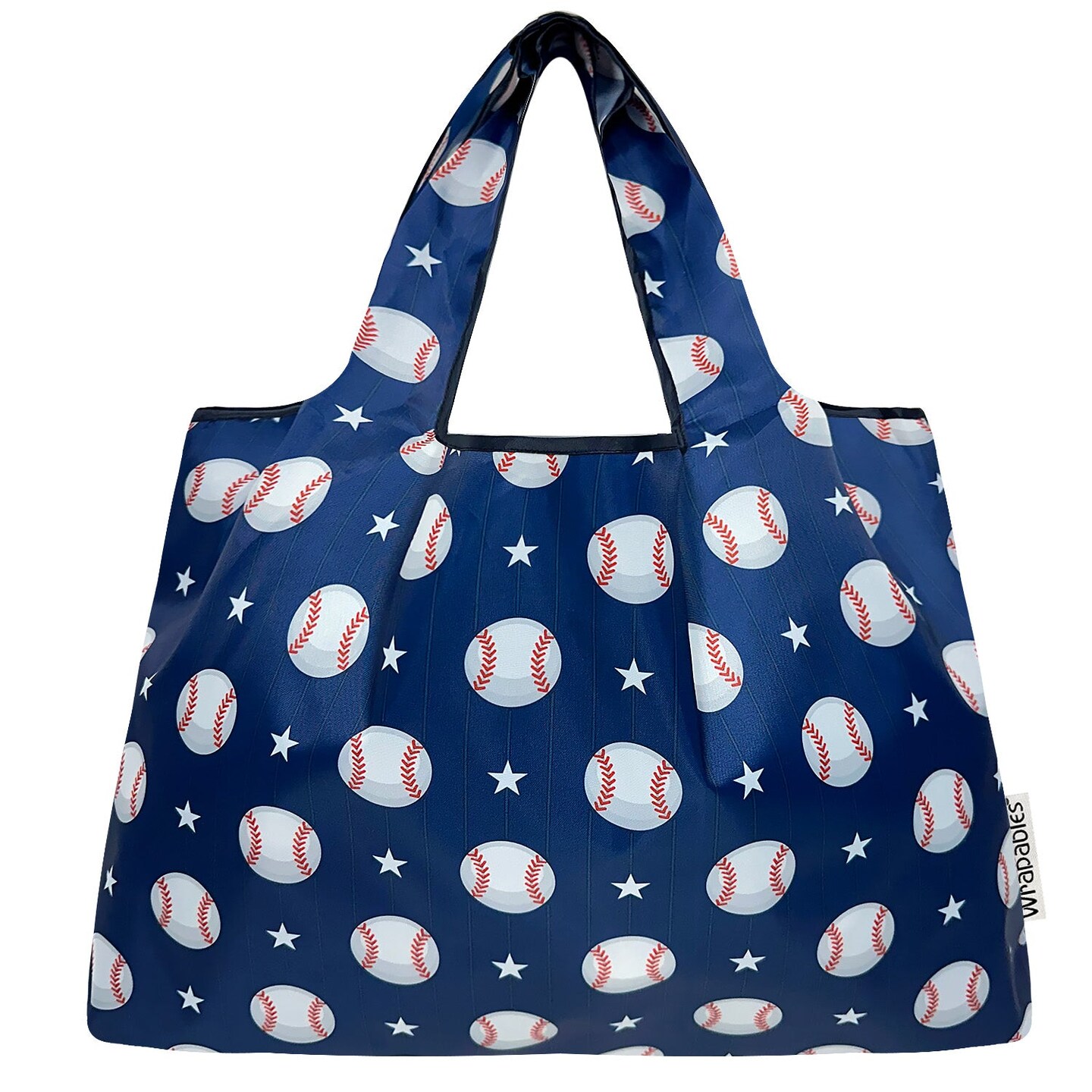 Wrapables Large Foldable Tote Nylon Reusable Grocery Bags, Baseball