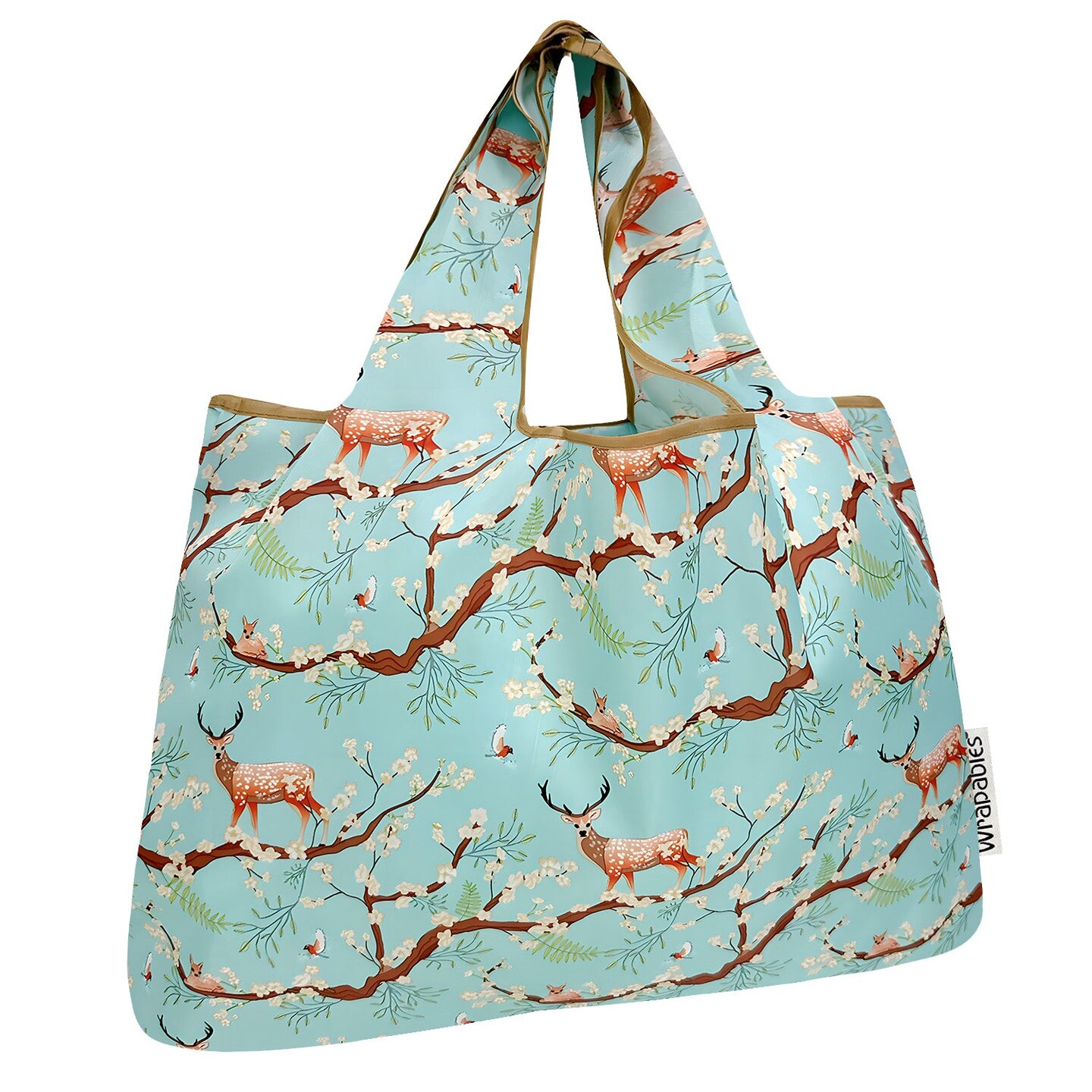 Wrapables Large Foldable Tote Nylon Reusable Grocery Bags, Floral Deer