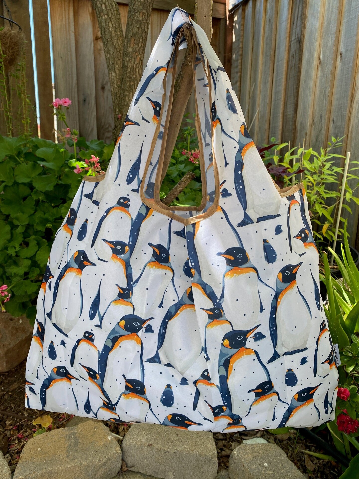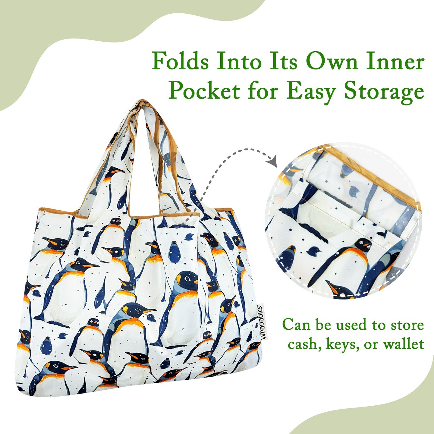 Wrapables Large Foldable Tote Nylon Reusable Grocery Bags, King Penguin