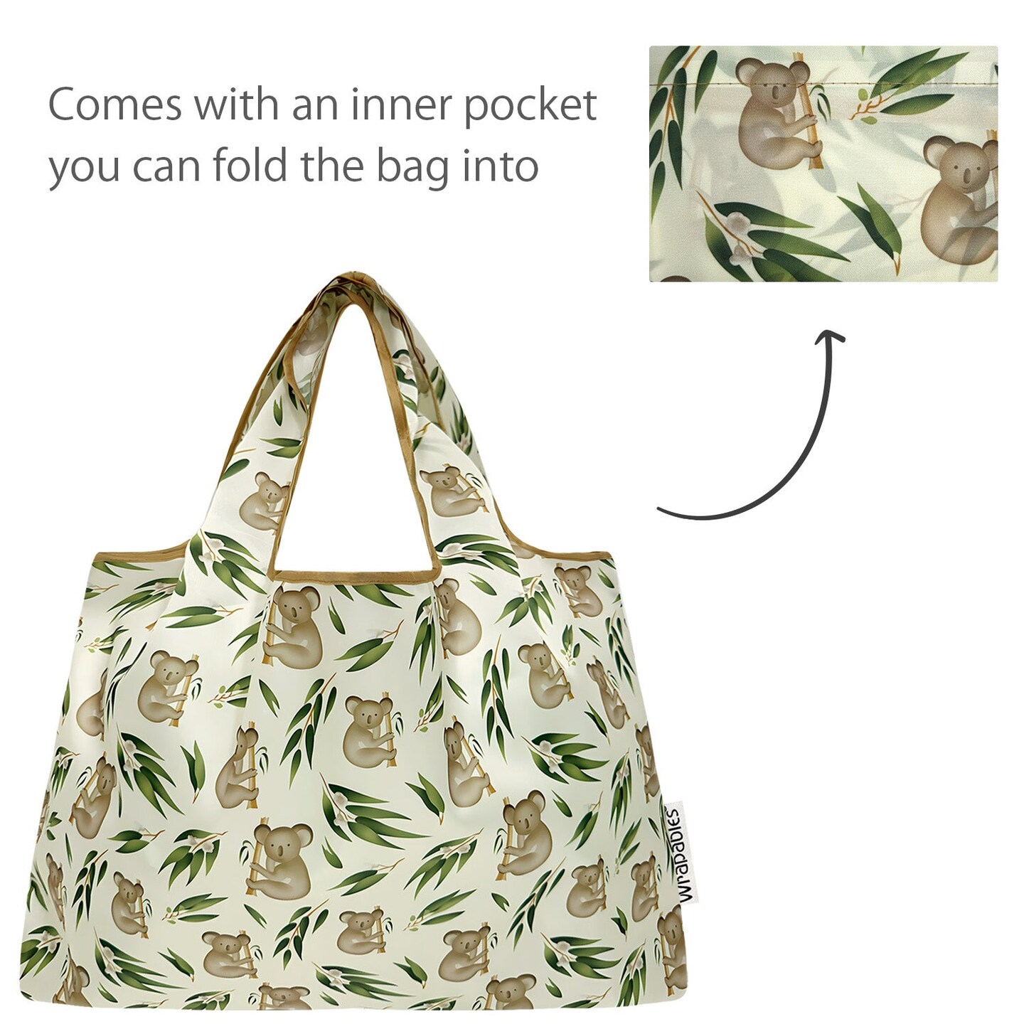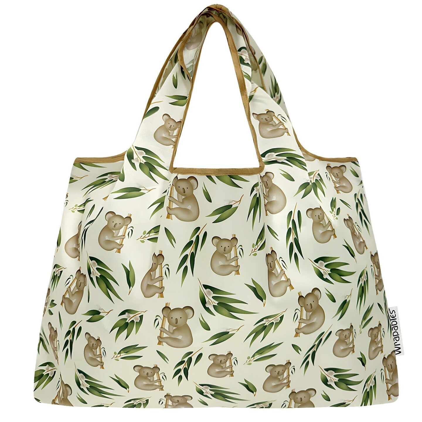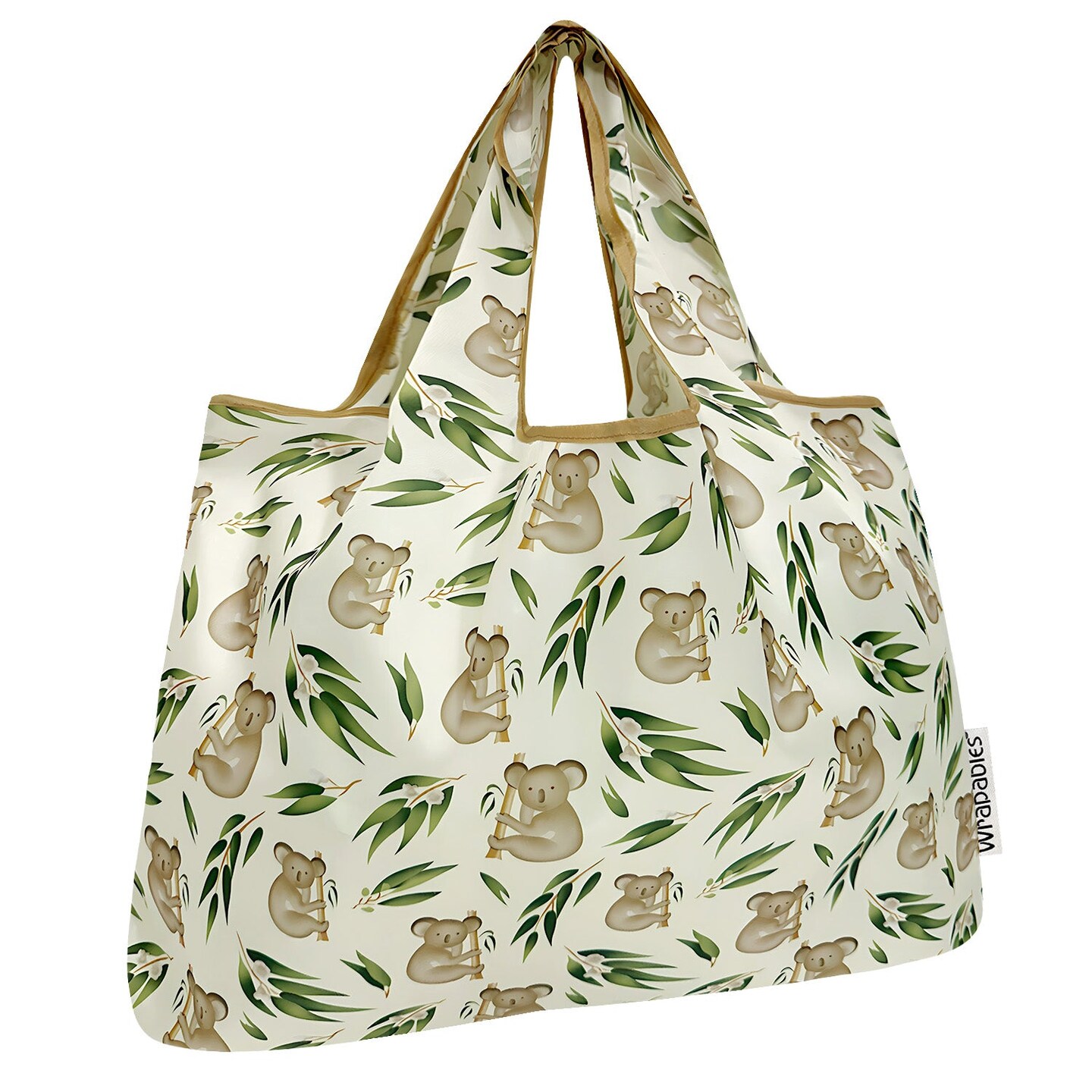 Wrapables Large Foldable Tote Nylon Reusable Grocery Bags, Koalas