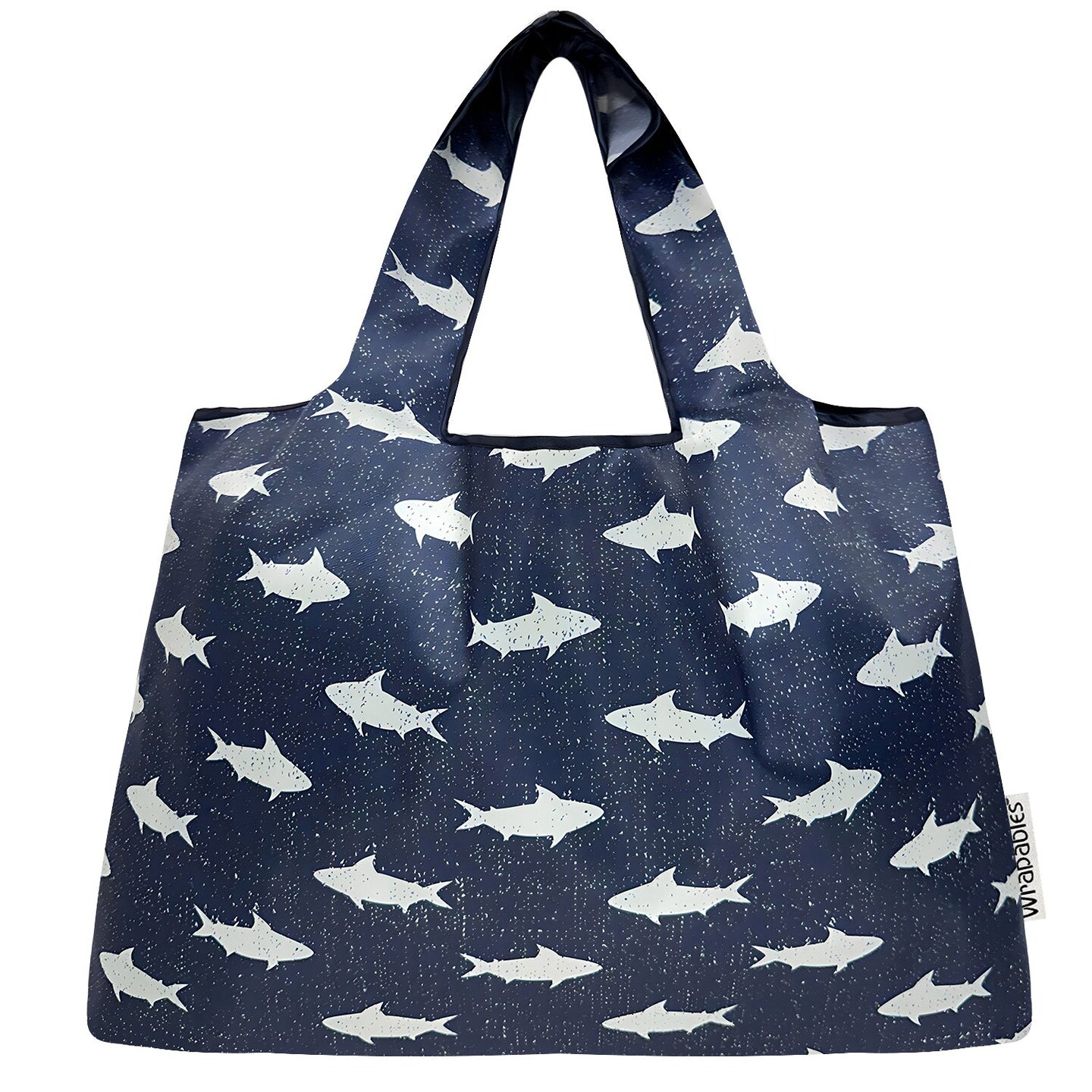 Wrapables Large Foldable Tote Nylon Reusable Grocery Bags, Ocean Fish
