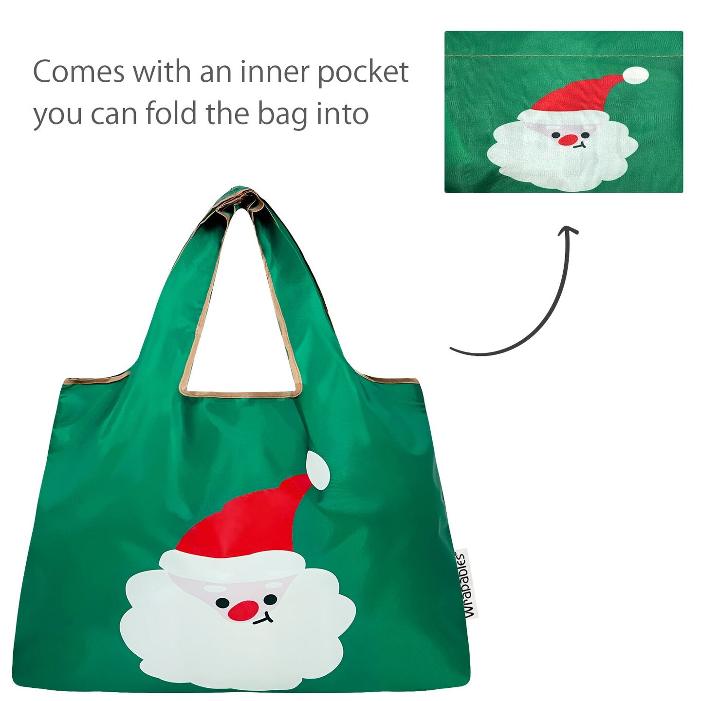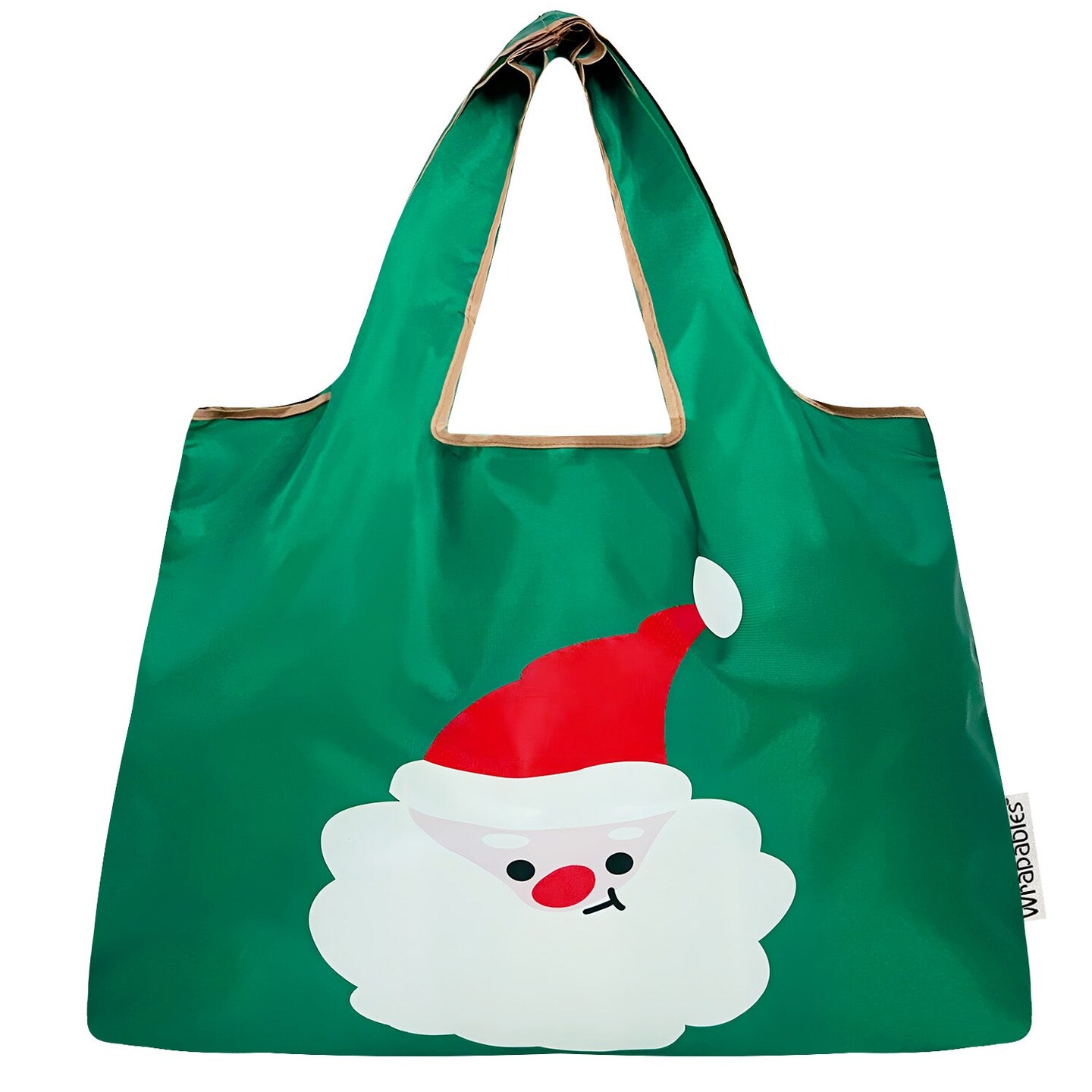 Wrapables Large Foldable Tote Nylon Reusable Grocery Bags, Santa