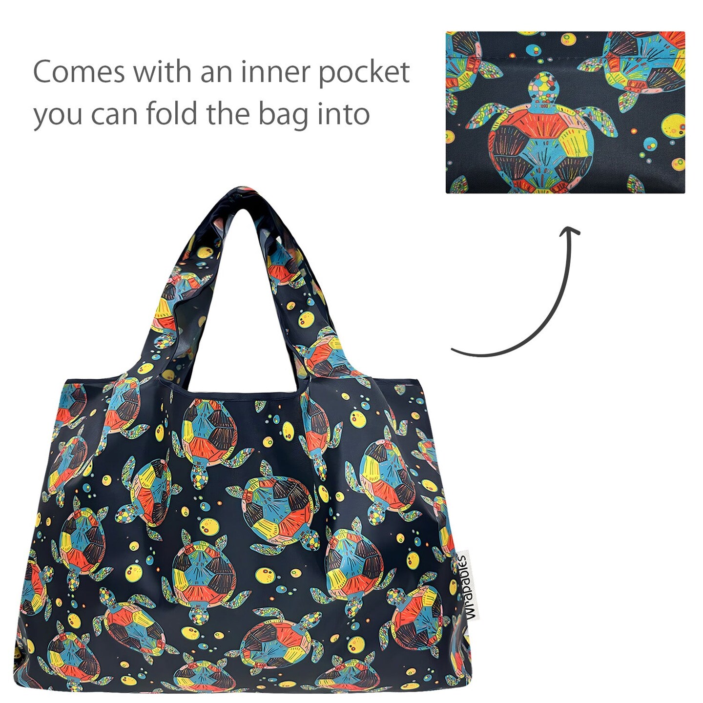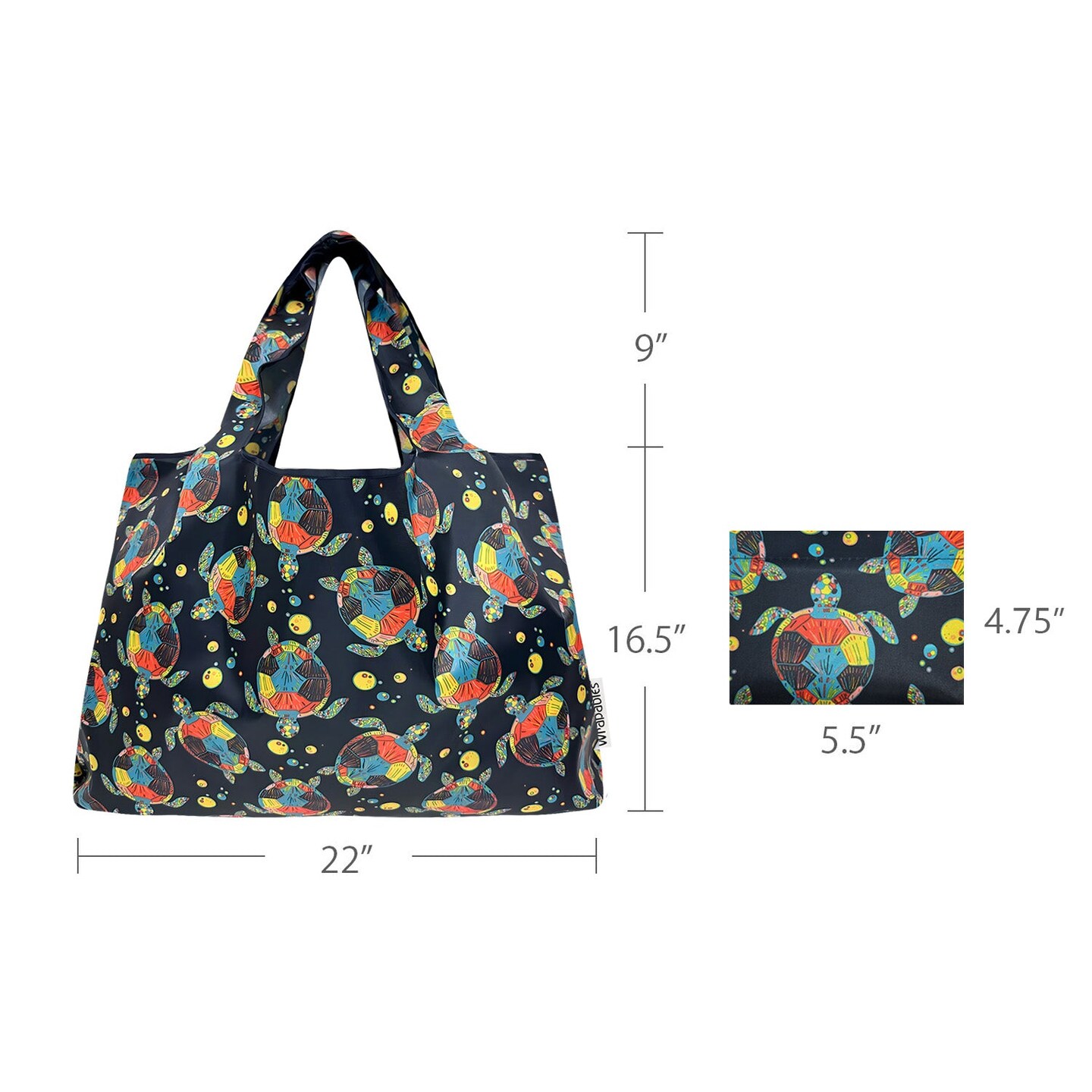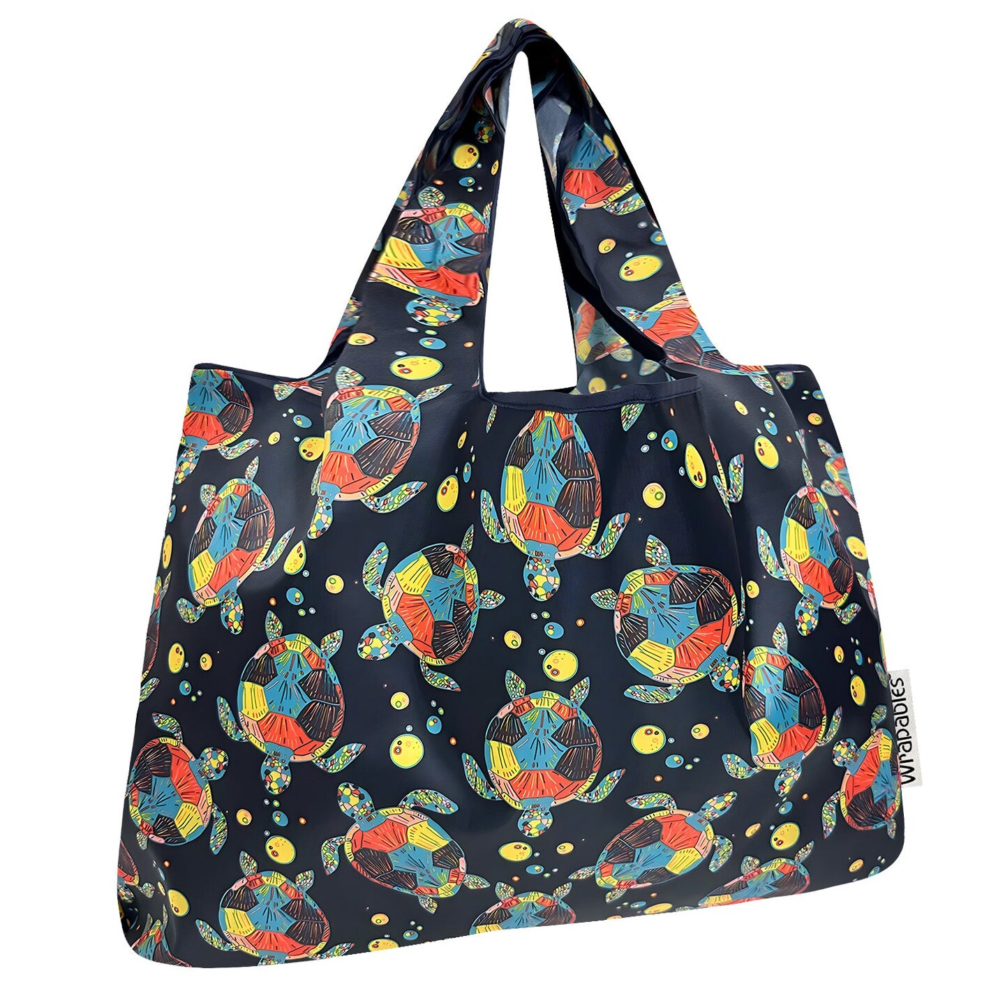 Wrapables Large Foldable Tote Nylon Reusable Grocery Bags, Sea Turtles