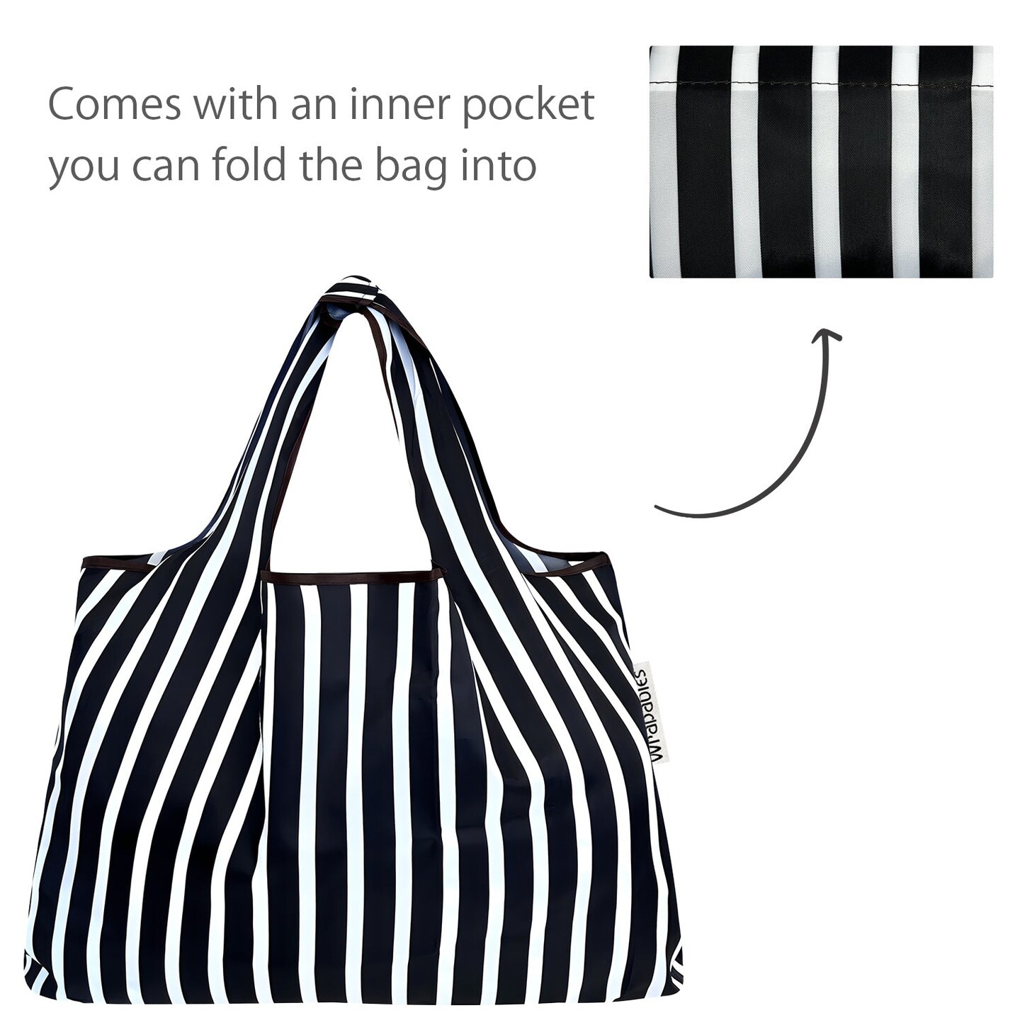 Wrapables Large Foldable Tote Nylon Reusable Grocery Bags, Stripes