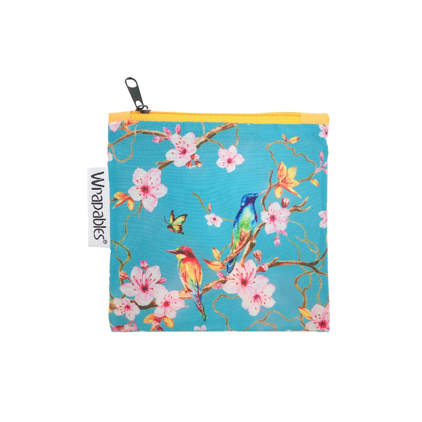Wrapables Large Reusable Shopping Tote Bag with Outer Pouch, Cherry Blossoms