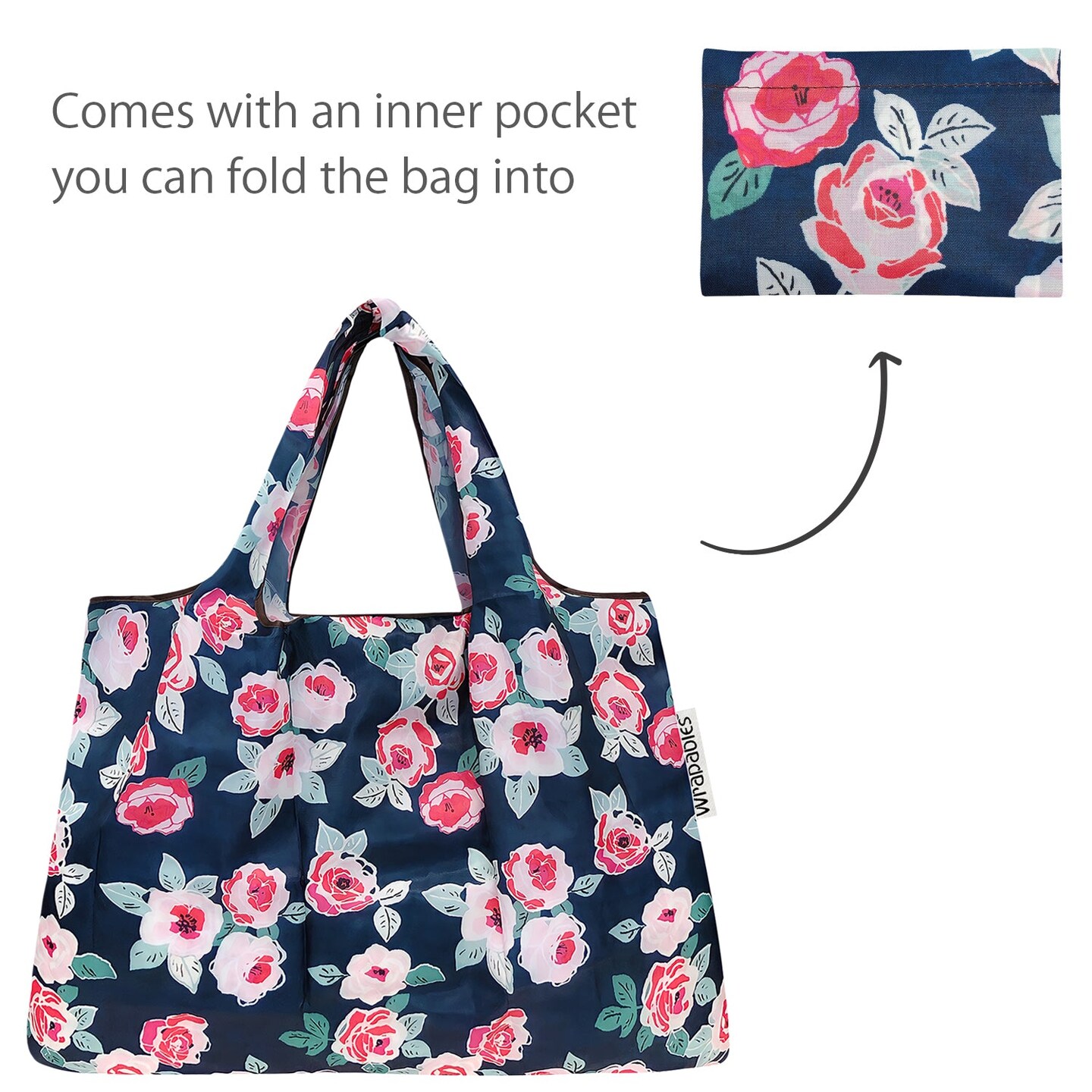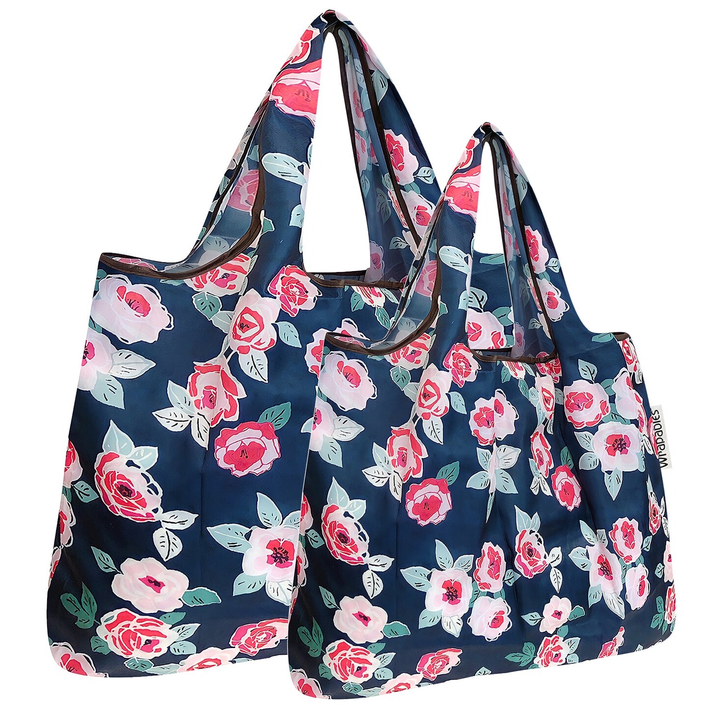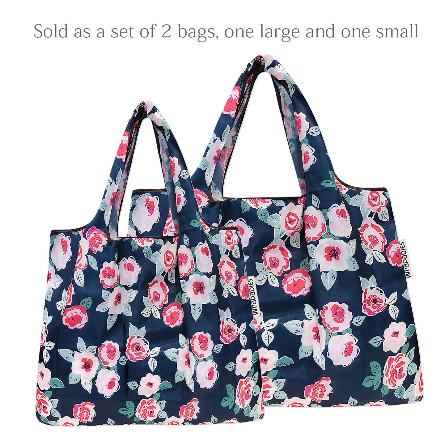 Wrapables Large & Small Foldable Tote Nylon Reusable Grocery Bags, Set of 2