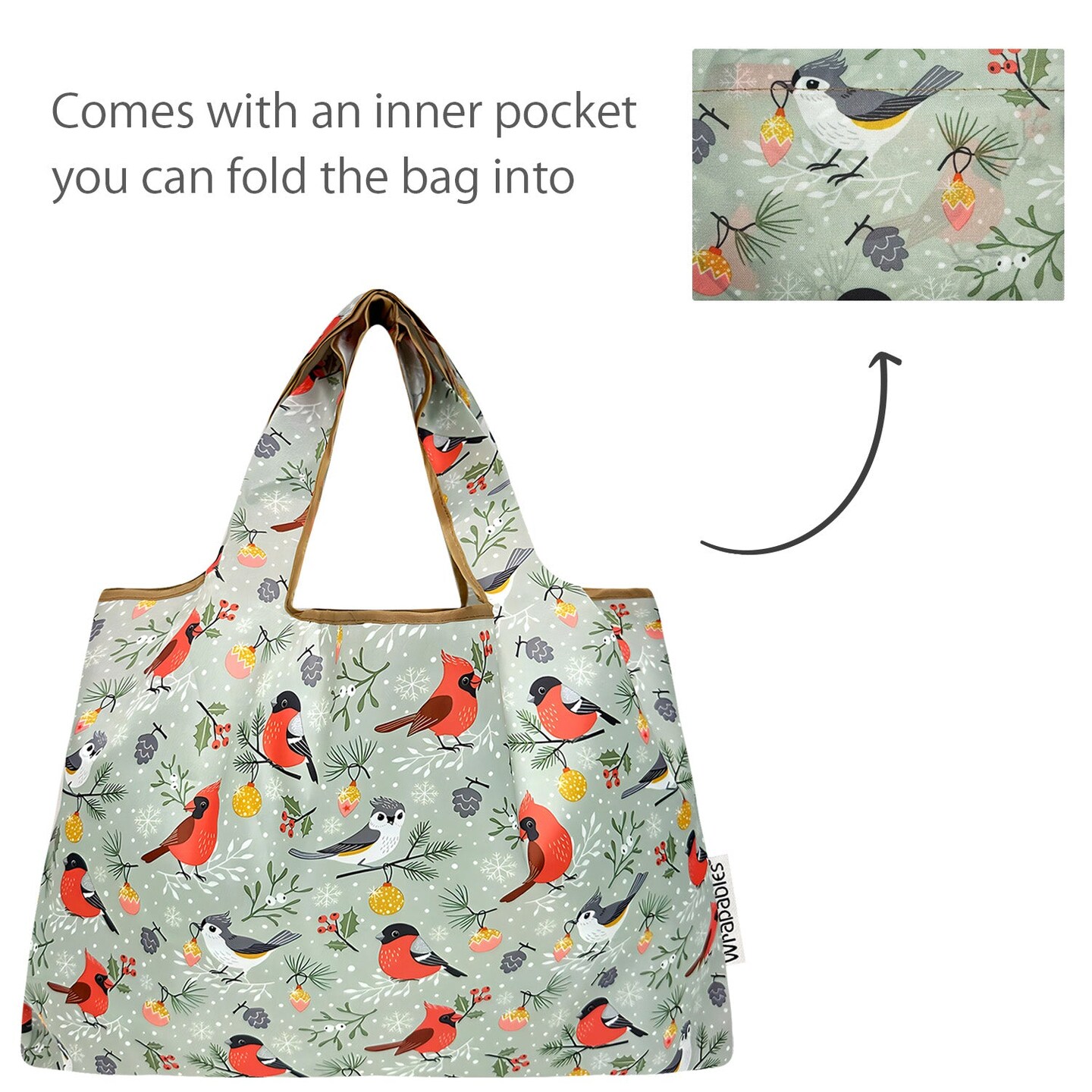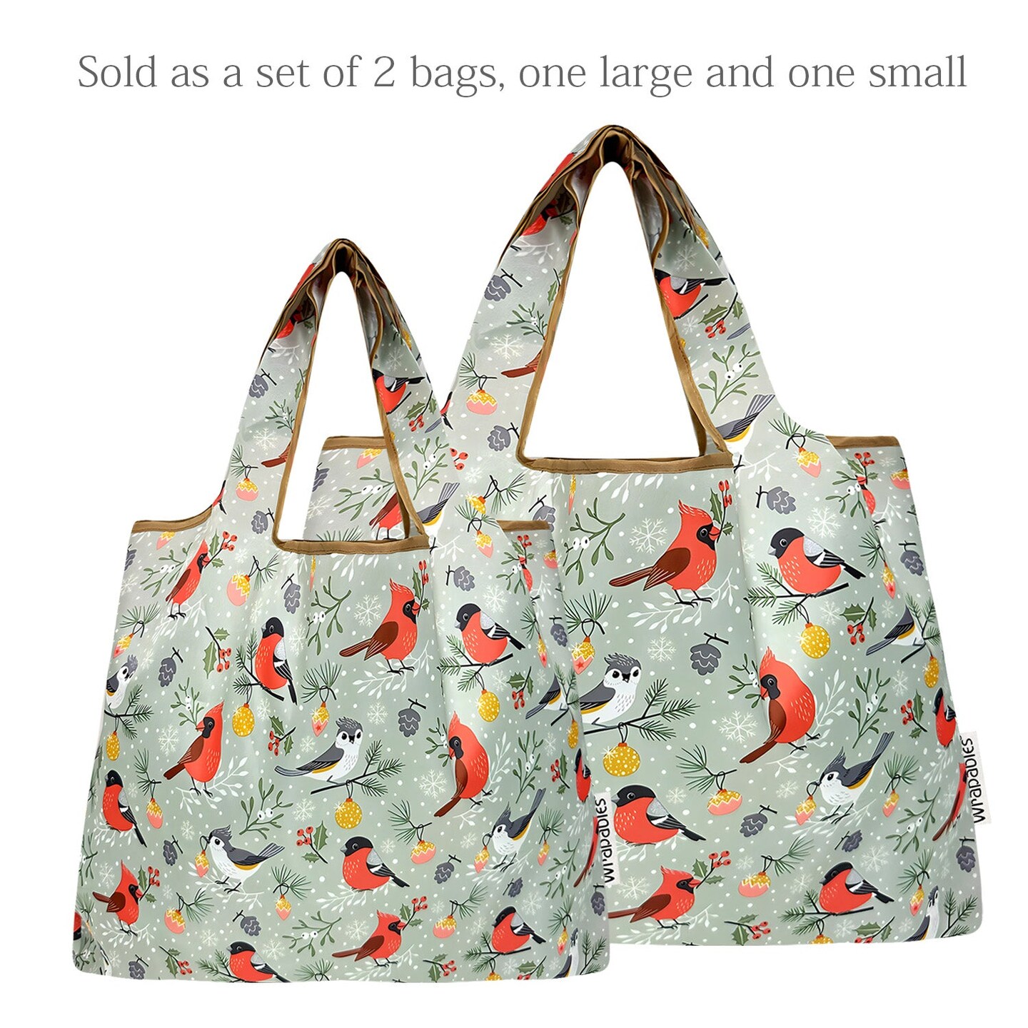 Wrapables Large & Small Foldable Tote Nylon Reusable Grocery Bags, Set of 2, Cardinals