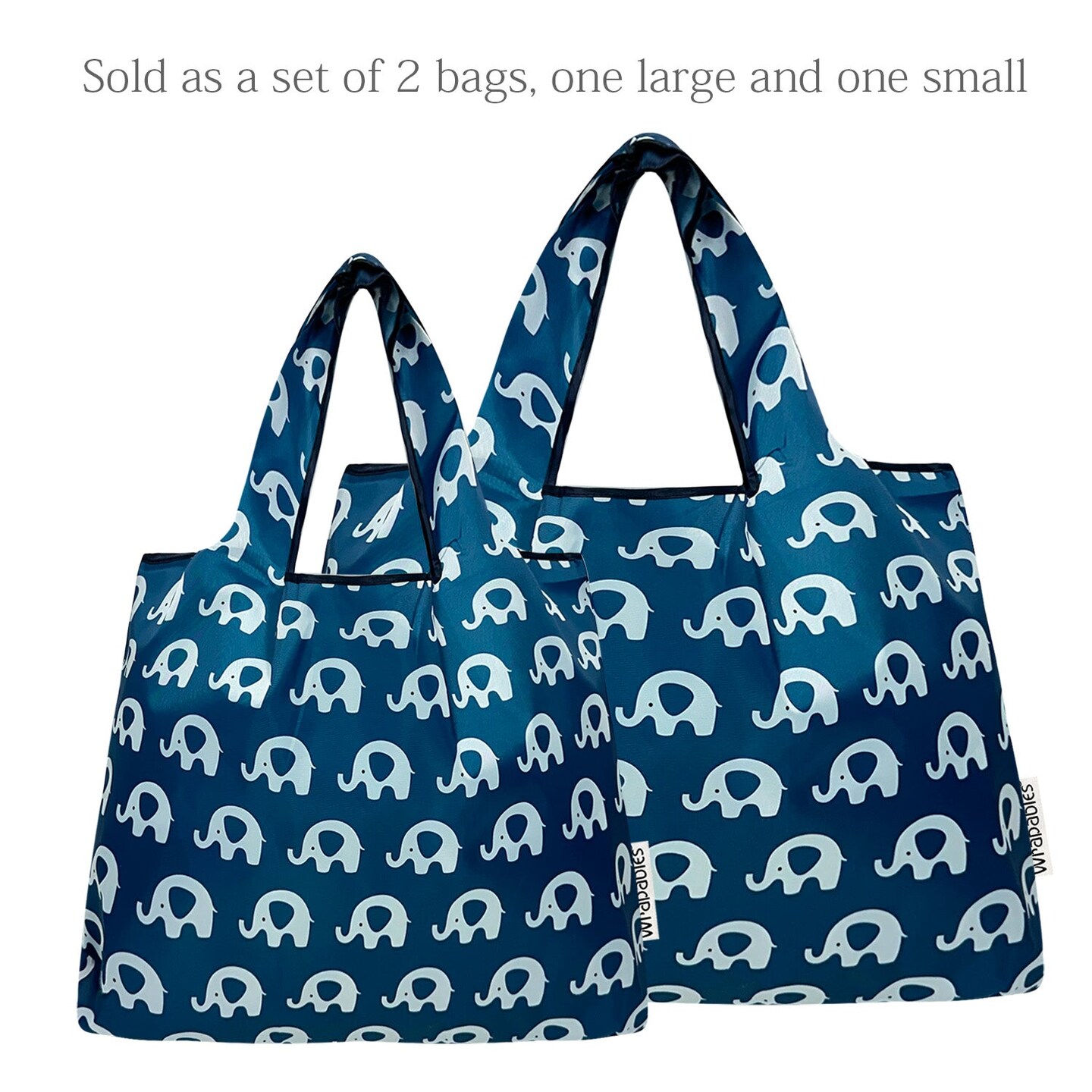 Wrapables Large & Small Foldable Tote Nylon Reusable Grocery Bags, Set of 2, Happy Elephants