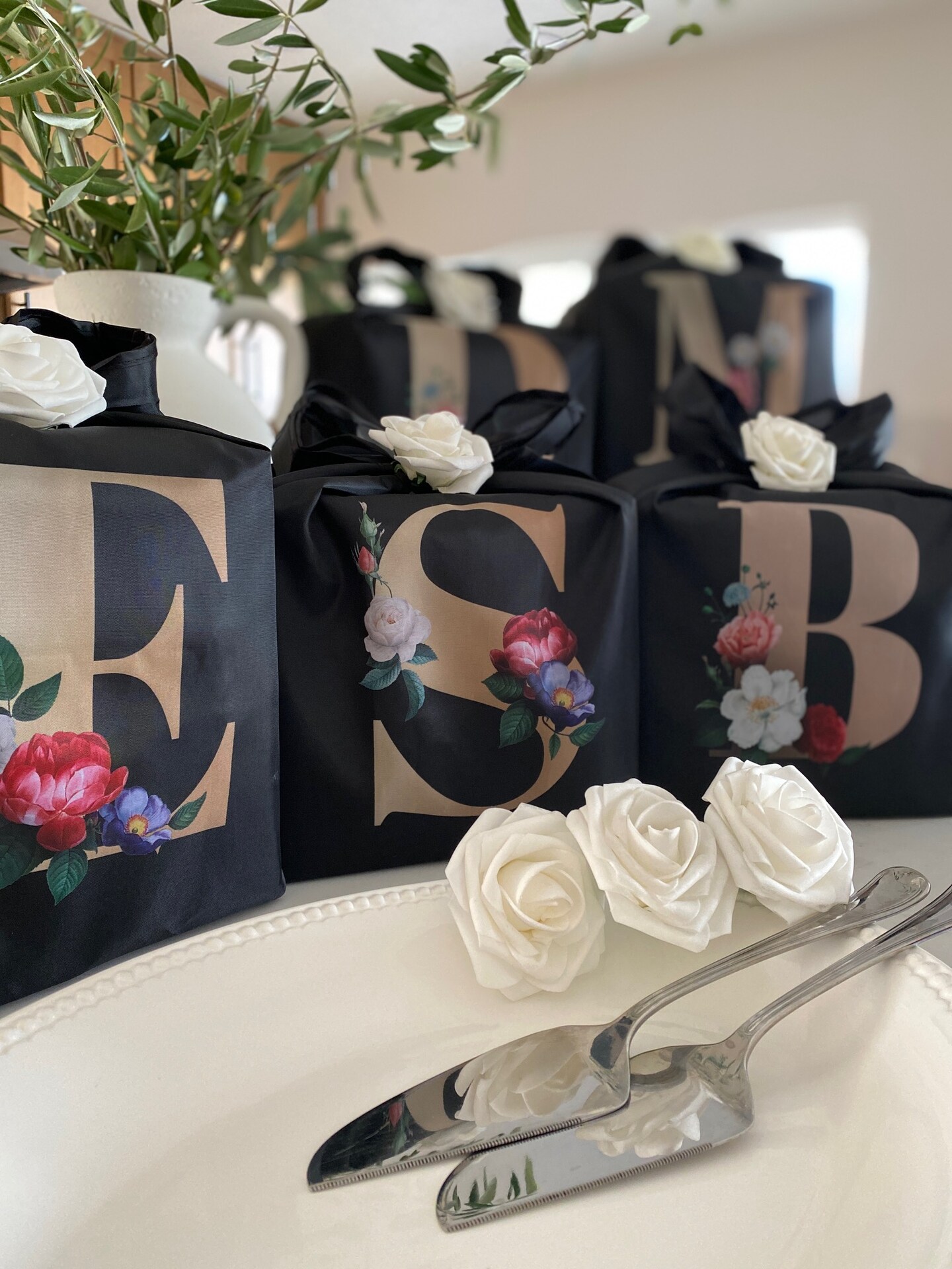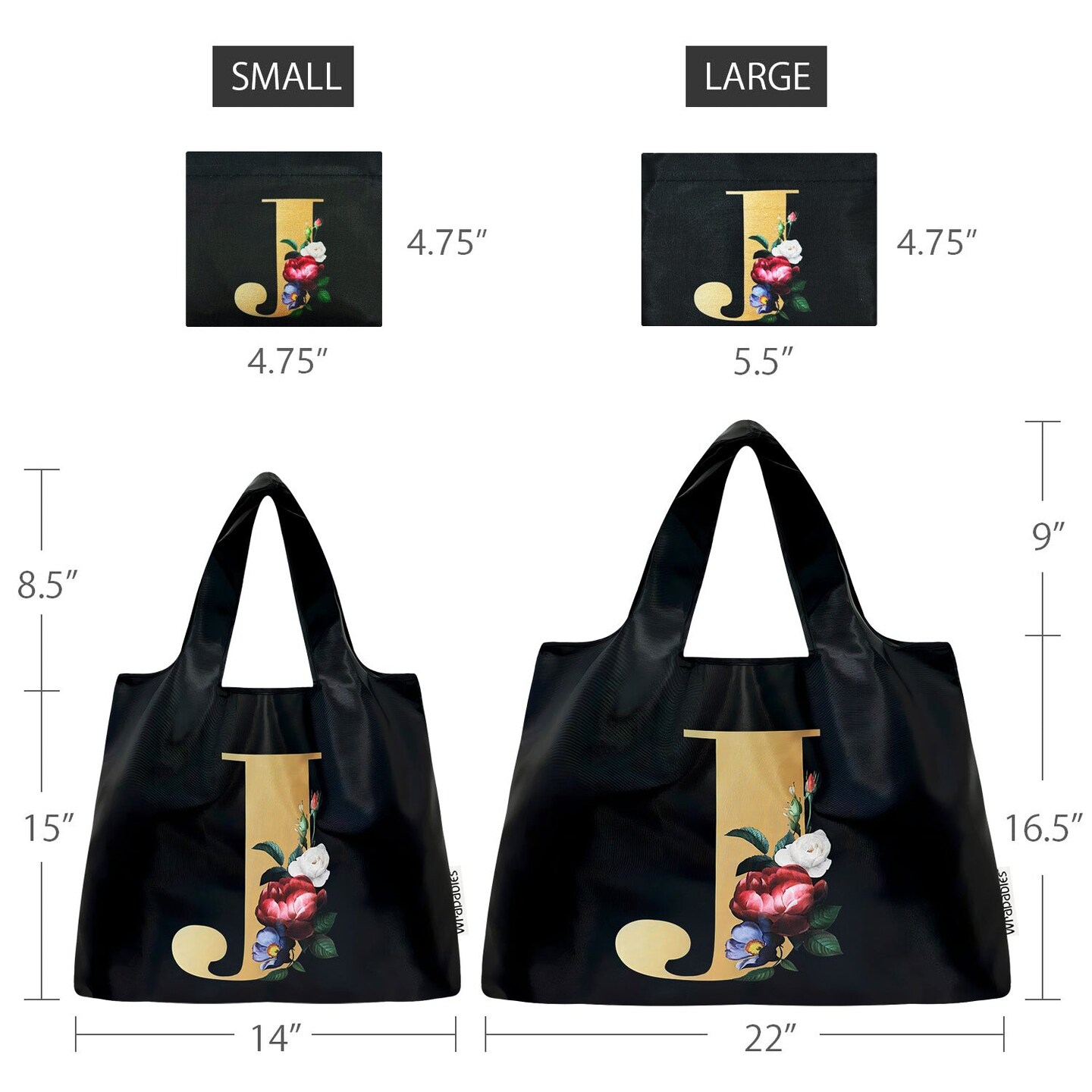 Wrapables Large & Small Nylon Reusable Grocery Bags, Initial Letter Tote Gift Bag for Wedding, Set of 2, Letter J