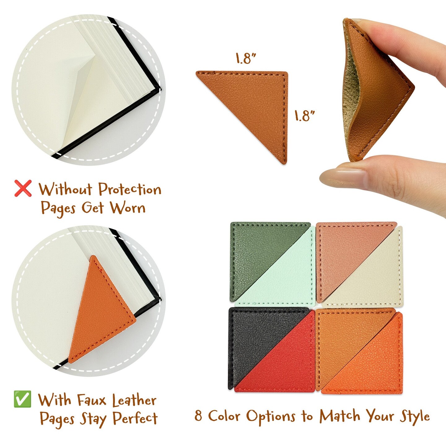Wrapables Leather Corner Bookmarks, Page Marker, Reading Supplies (Set of 8), Triangles
