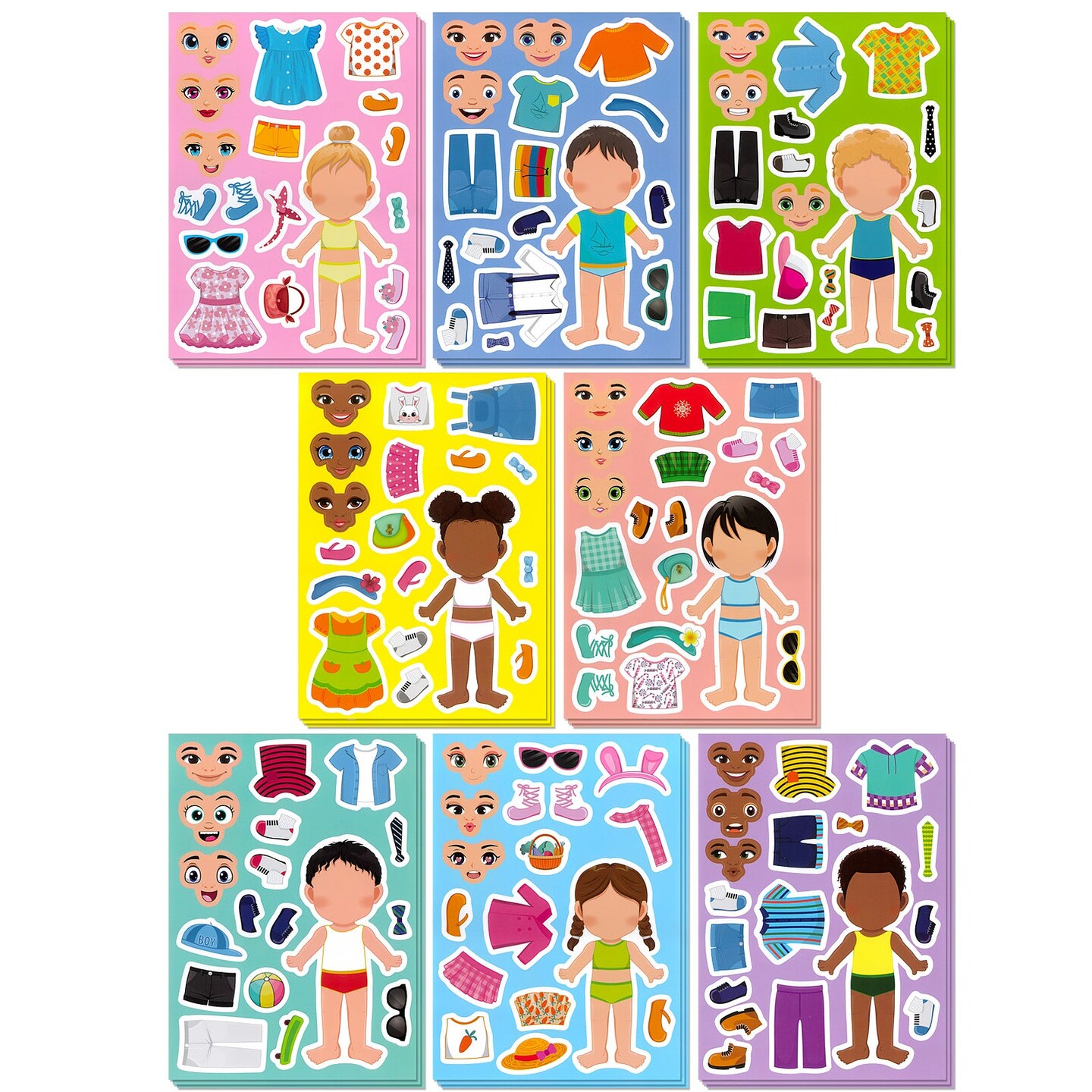 Wrapables Make a Face Stickers, Make Your Own Animal, Food, Dress-Up Stickers, DIY Craft Activities, Party Favors (24 Sheets), Boys and Girls