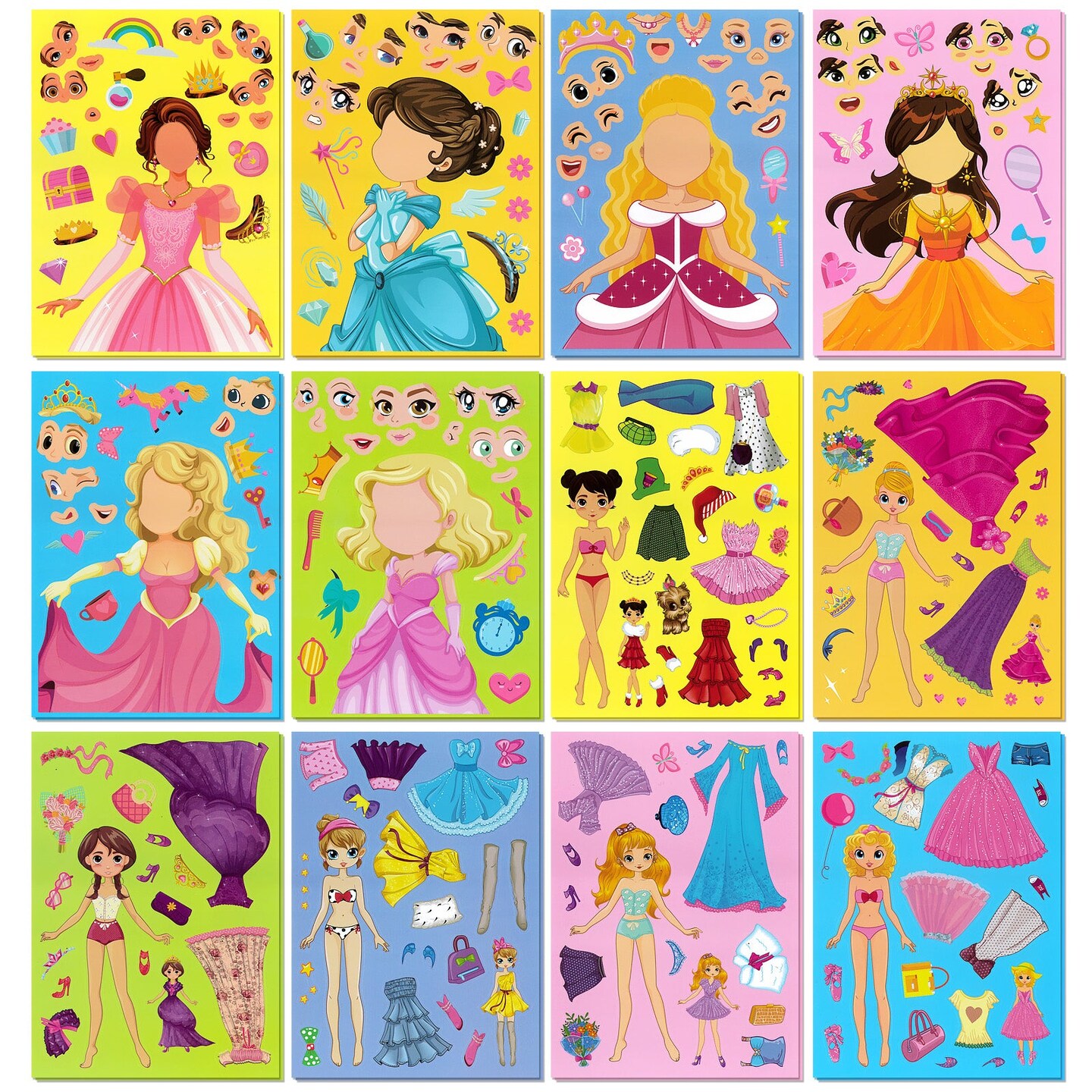 Wrapables Make a Face Stickers, Make Your Own Animal, Food, Dress-Up Stickers, DIY Craft Activities, Party Favors (24 Sheets), Princesses and Girls