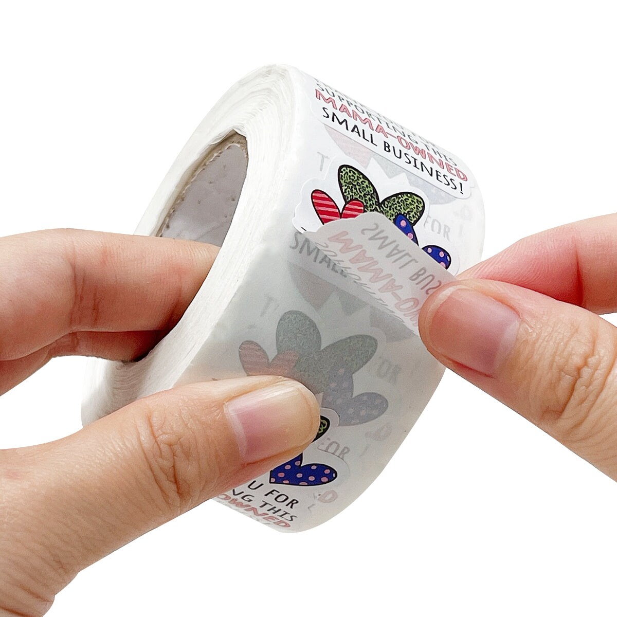 Wrapables Mama-Owned Small Business Thank You Stickers Roll, Sealing Stickers and Labels for Boxes, Envelopes, Bags and Packages (500pcs)