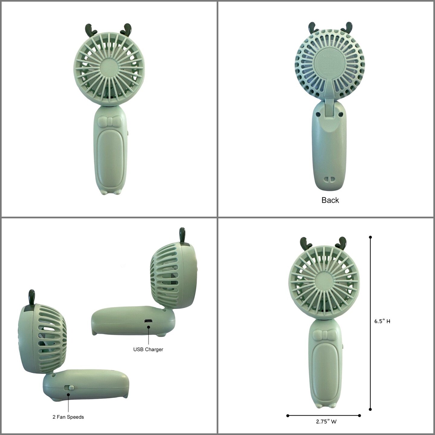 Wrapables Mini Portable Handheld and Desktop Rechargeable USB Fan, Green Deer