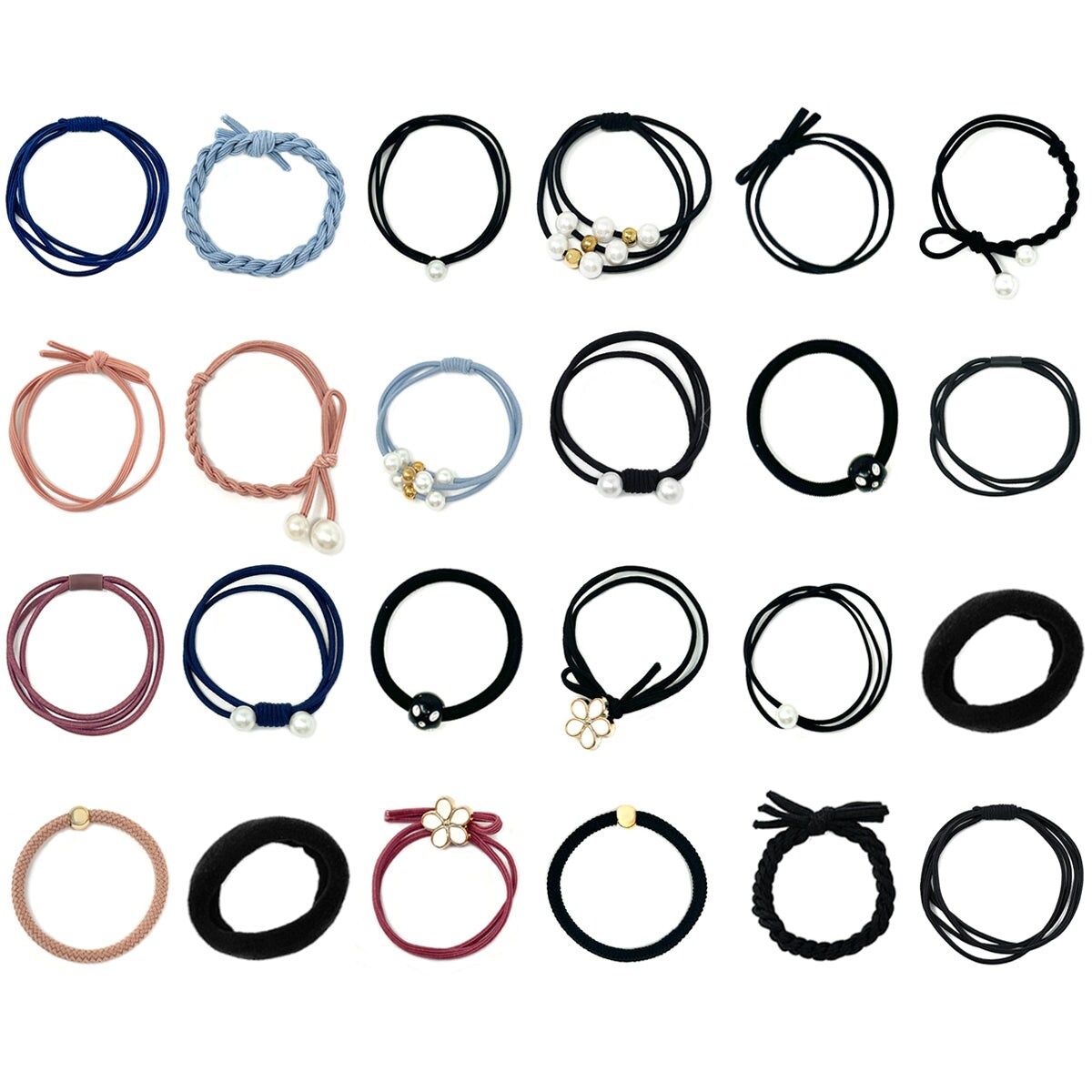 Wrapables Multicolor Hair Ties with Faux Pearl in Organza Pouches (Set of 24)