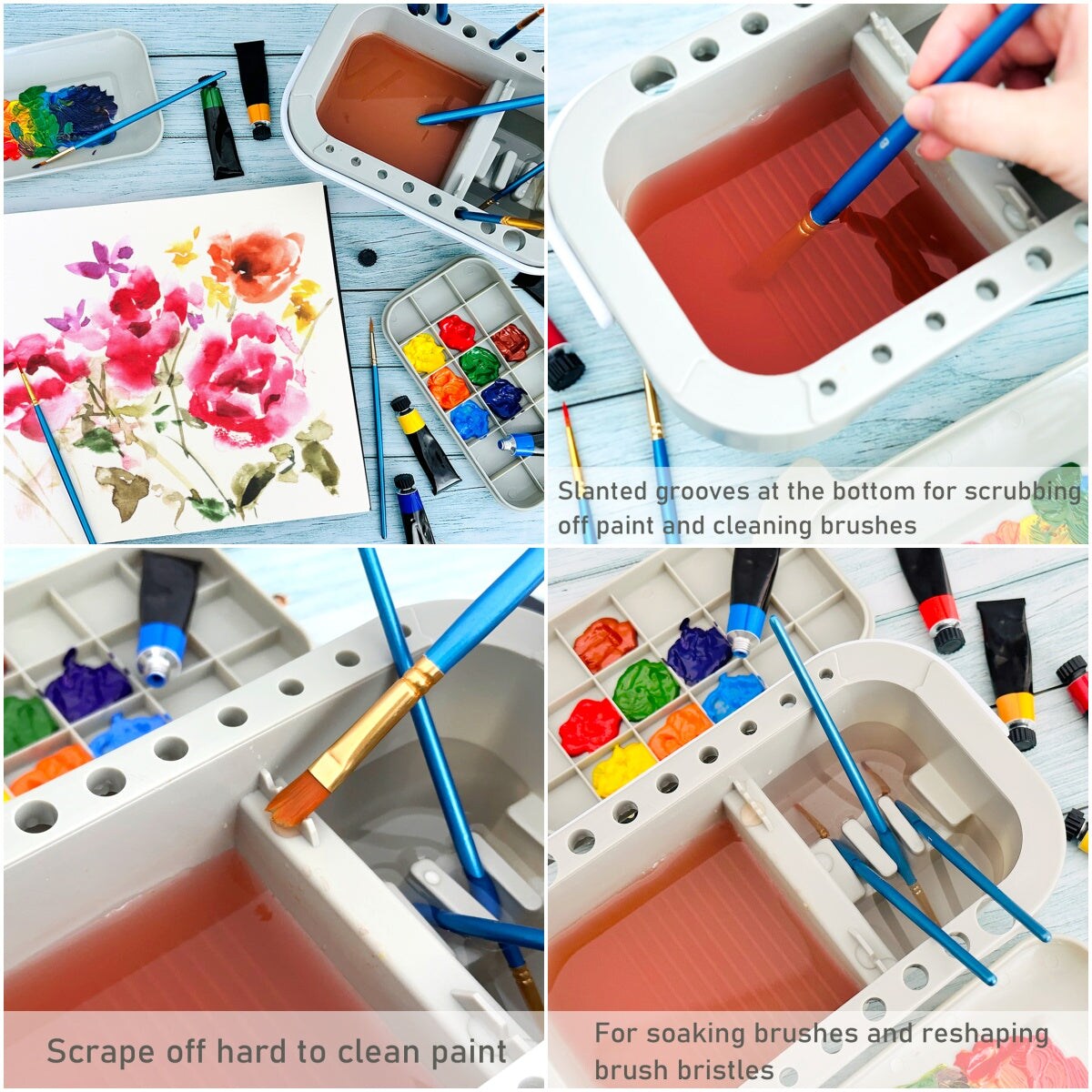 Wrapables Paint Brush Cleaner, Artist Paint Brush Holder with Palette Tray and Handle for Acrylic, Watercolor and Water-Based Paints