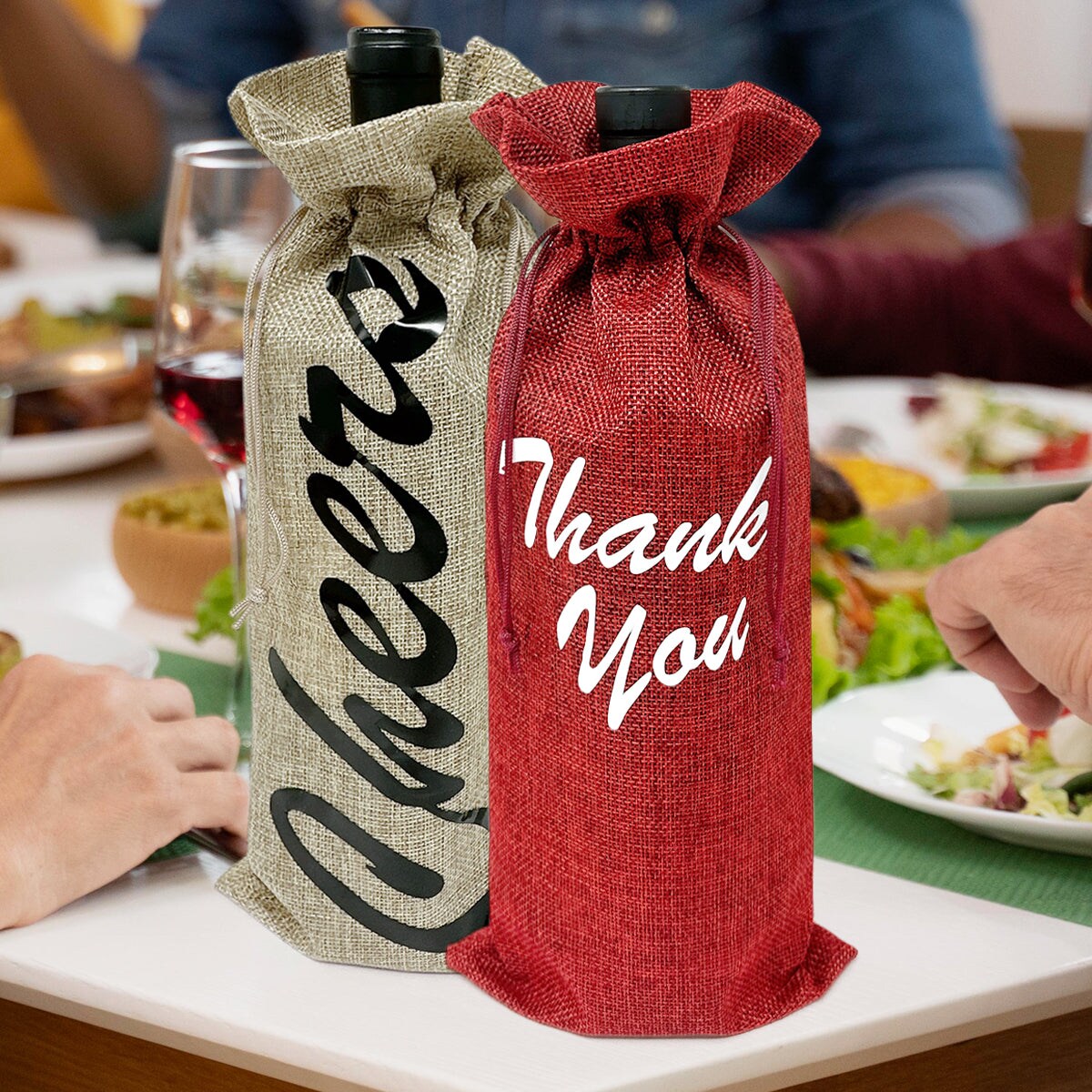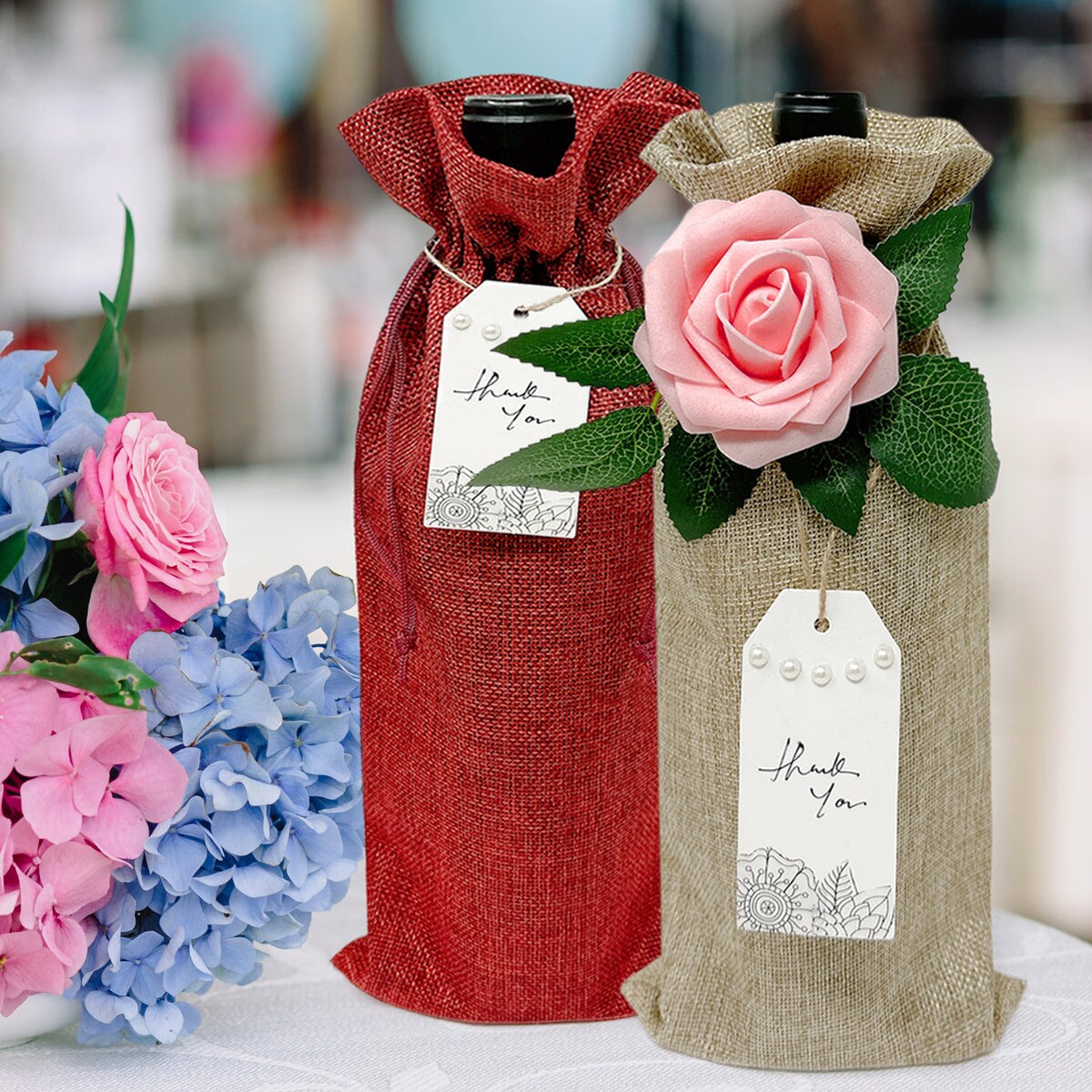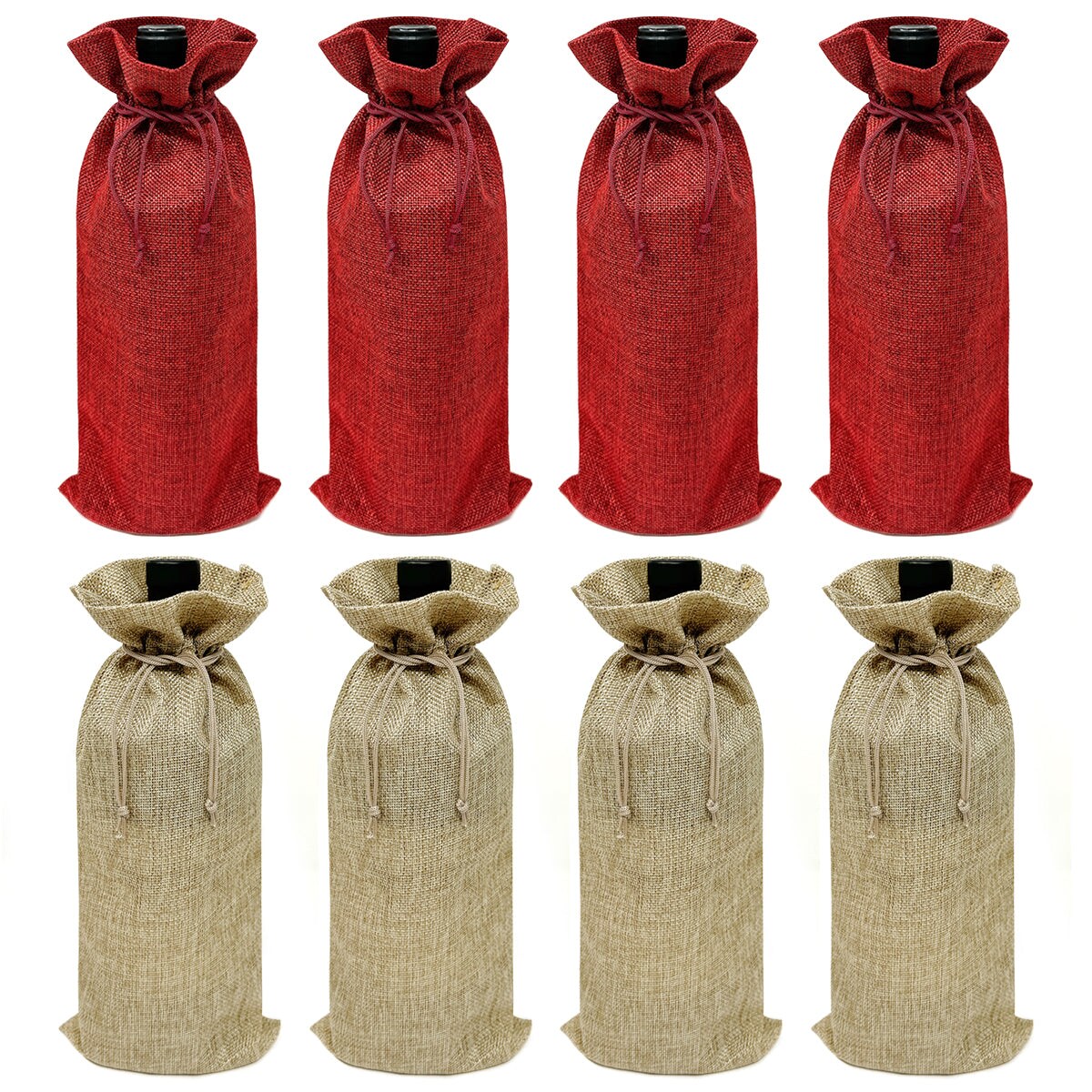 Wrapables Reusable Burlap Wine Bags, Rustic Gift Bags with Drawstring (Set of 8)