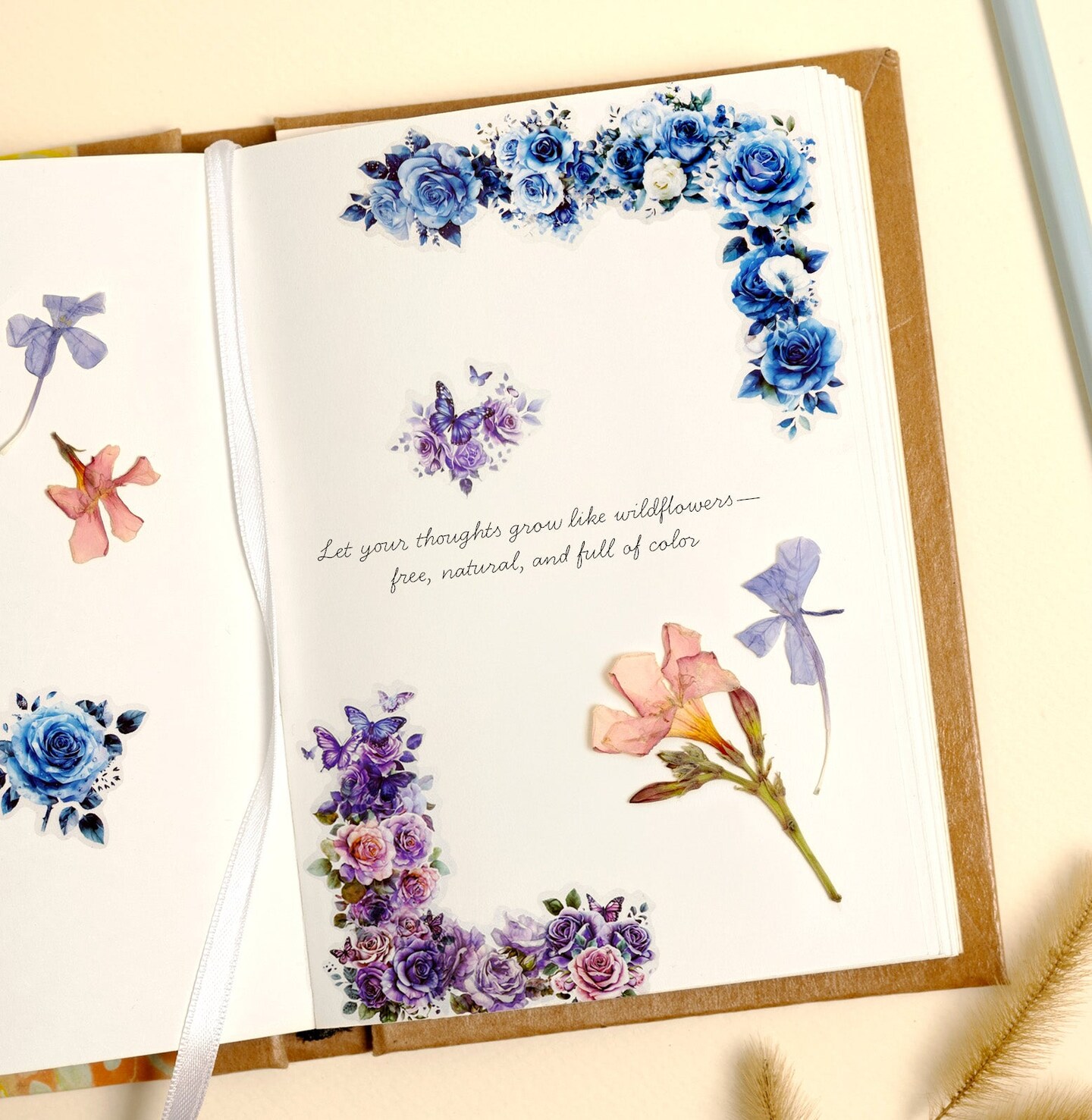 Wrapables Romantic Floral PET Tape, Pre-Cut Stickers for Scrapbooking, Stationery, Journaling, Diary, Card Making (Set of 2), Lavender and Blue
