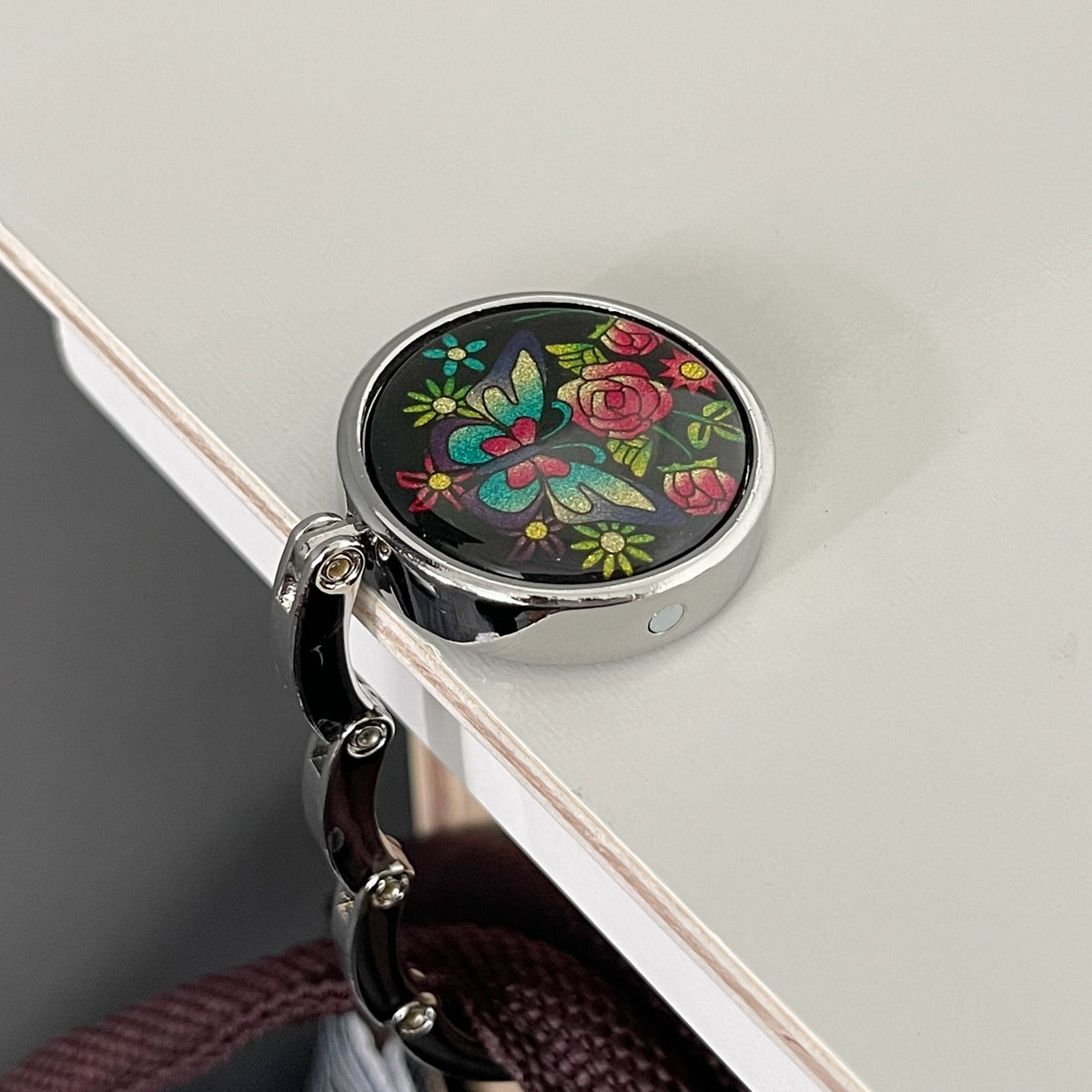 Wrapables Scenic Purse Hook Hanger, Foldable Handbag Table Hanger, Shimmery Butterfly