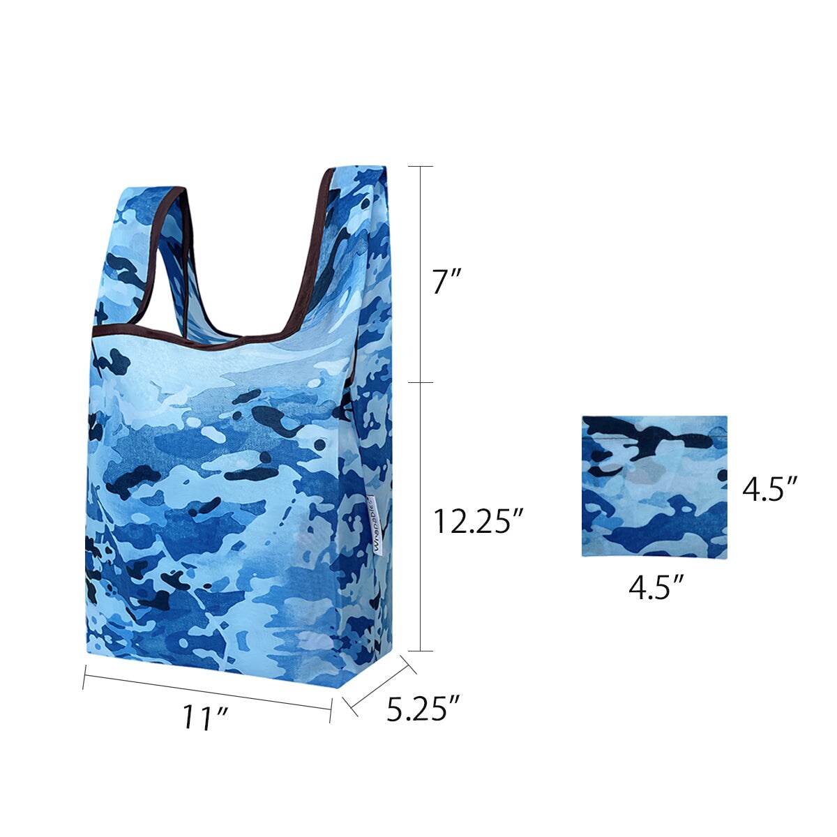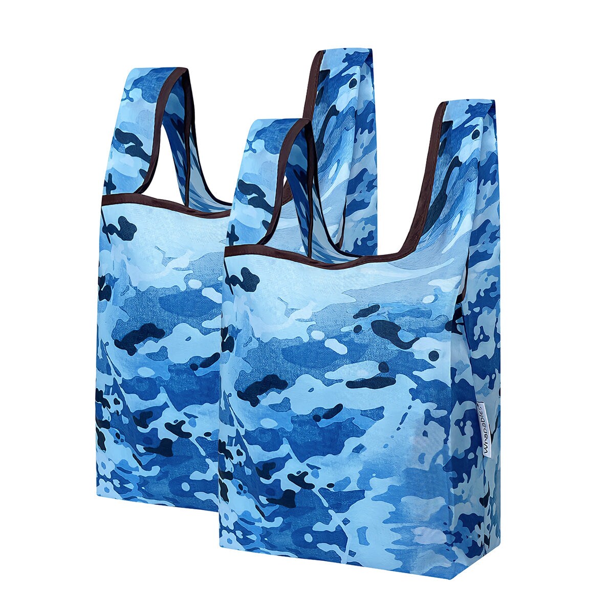 Wrapables Small JoliBag Nylon Reusable Grocery Bag, 2 Pack, Camouflage Blue