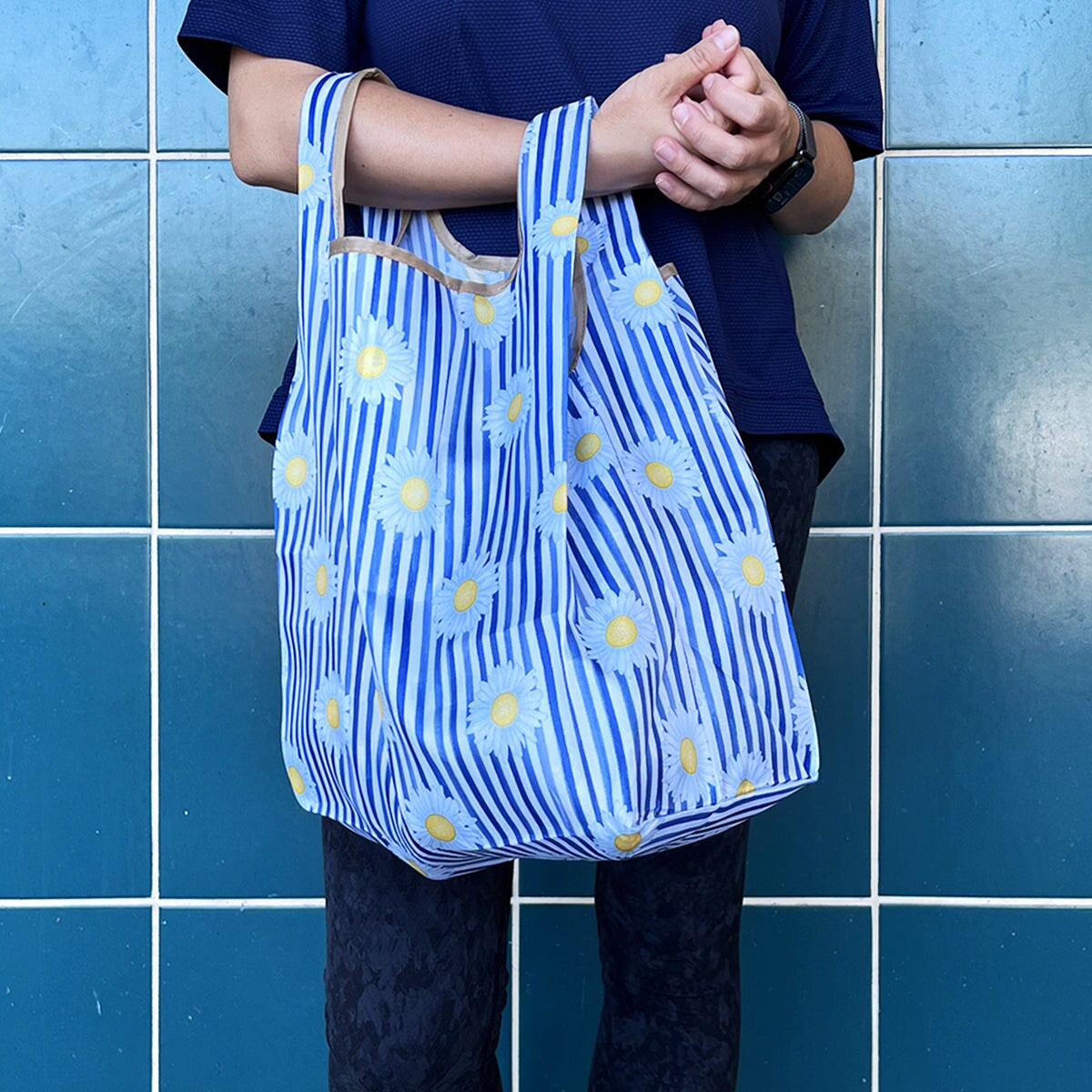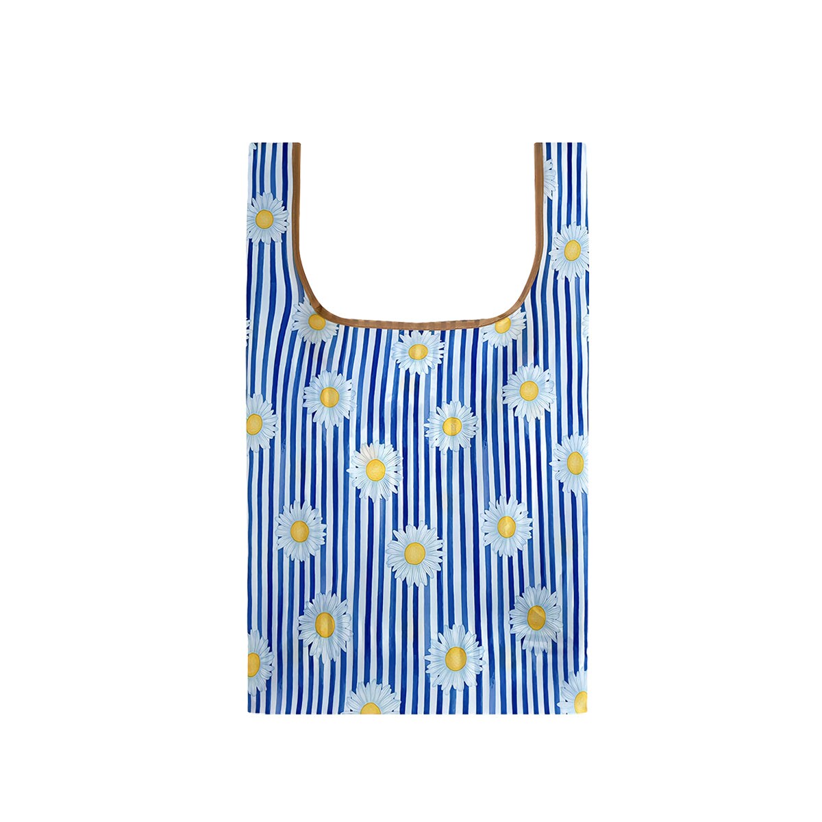 Wrapables Small JoliBag Nylon Reusable Grocery Bag, 2 Pack, Daisies & Stripes