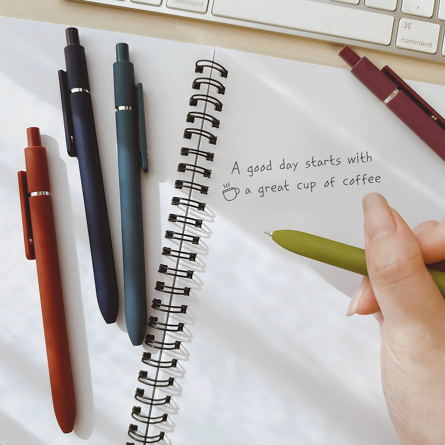 Wrapables Smooth Retractable Black Ink Gel Pens, 0.5mm Fine Point, for Home Office Work (Set of 5), Oceani