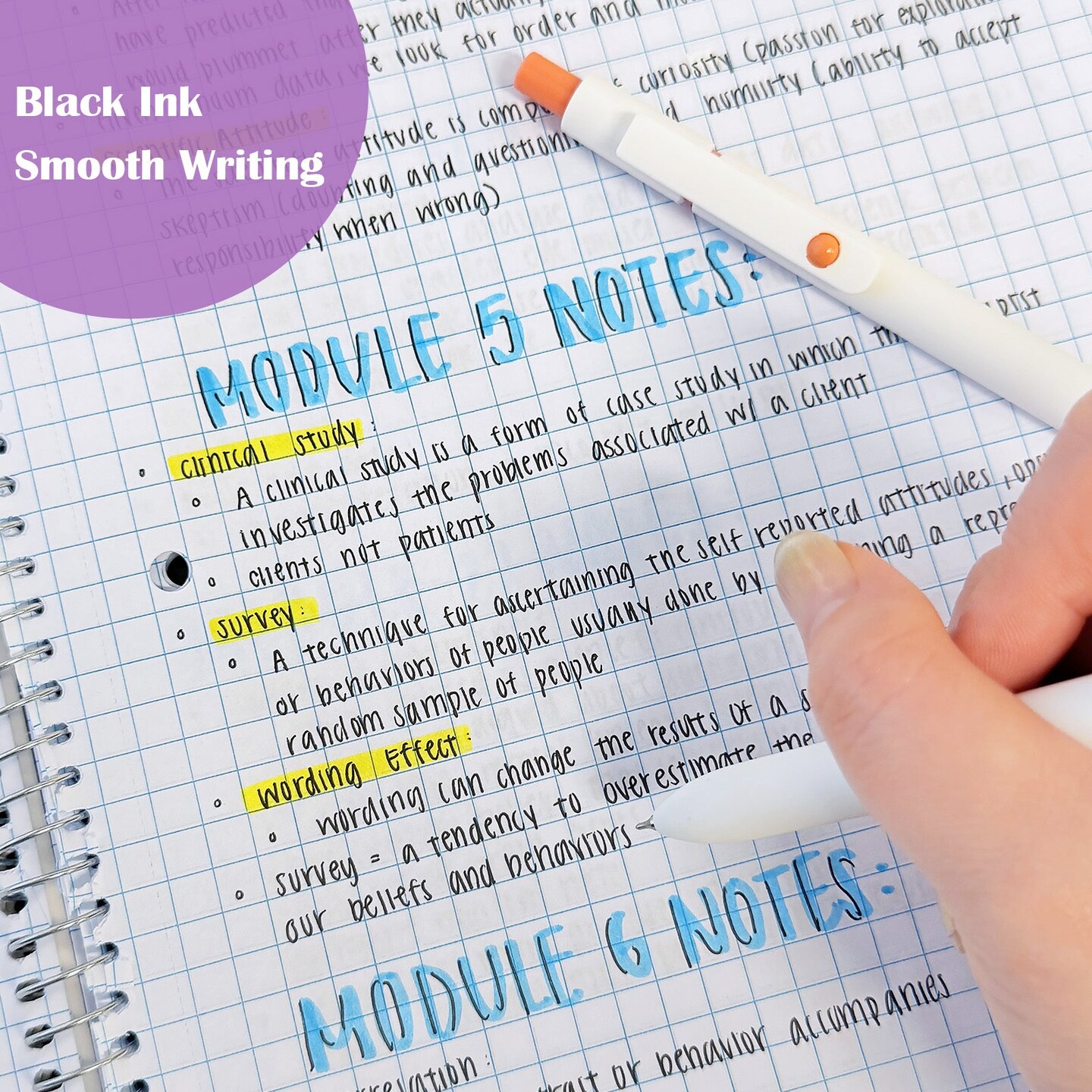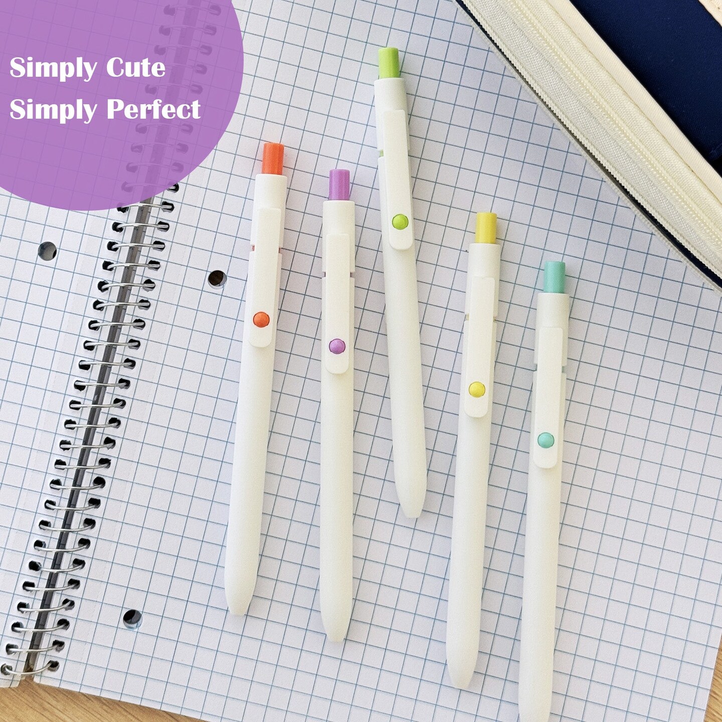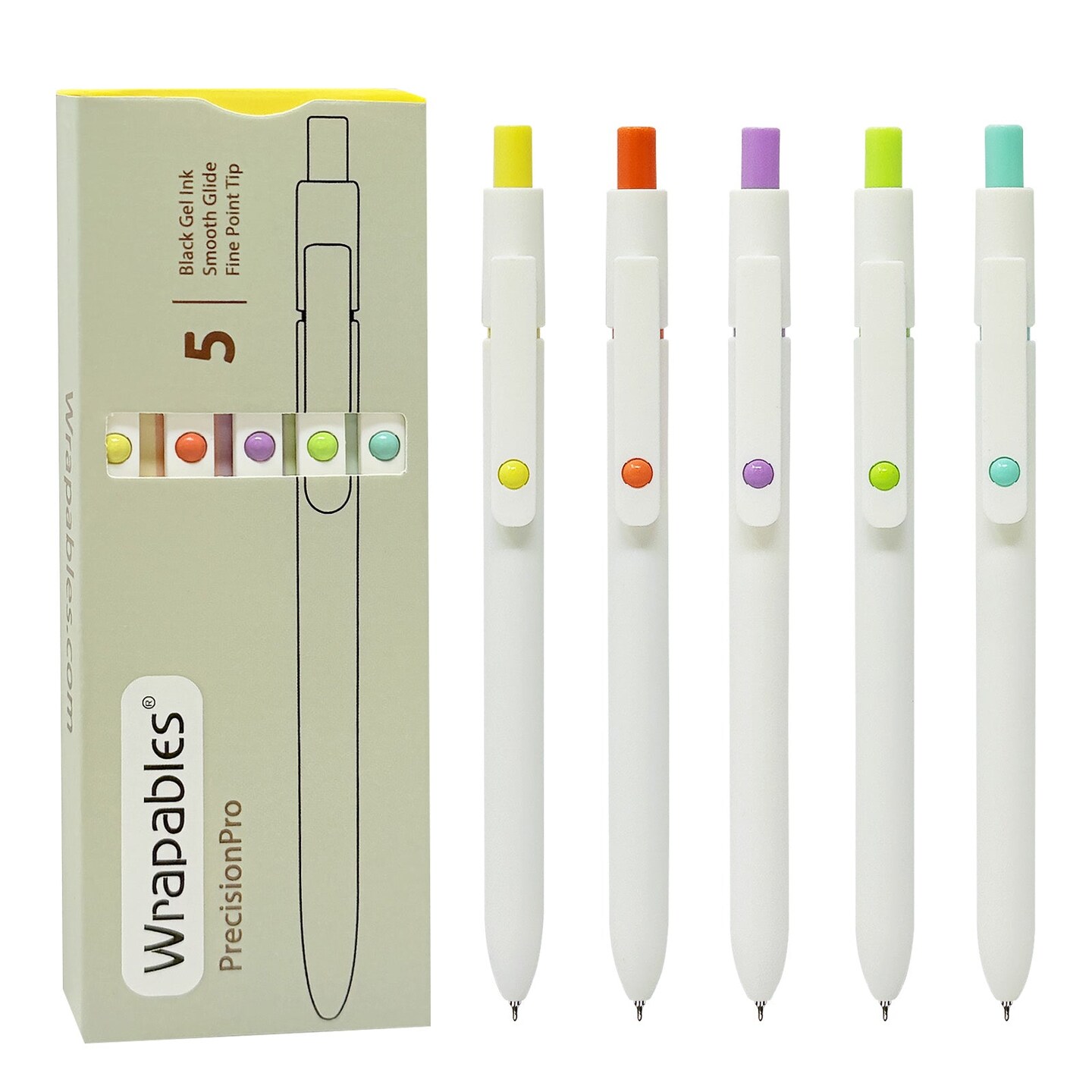 Wrapables Smooth Retractable Black Ink Gel Pens, 0.5mm Fine Point, for Home Office Work (Set of 5), Pastel