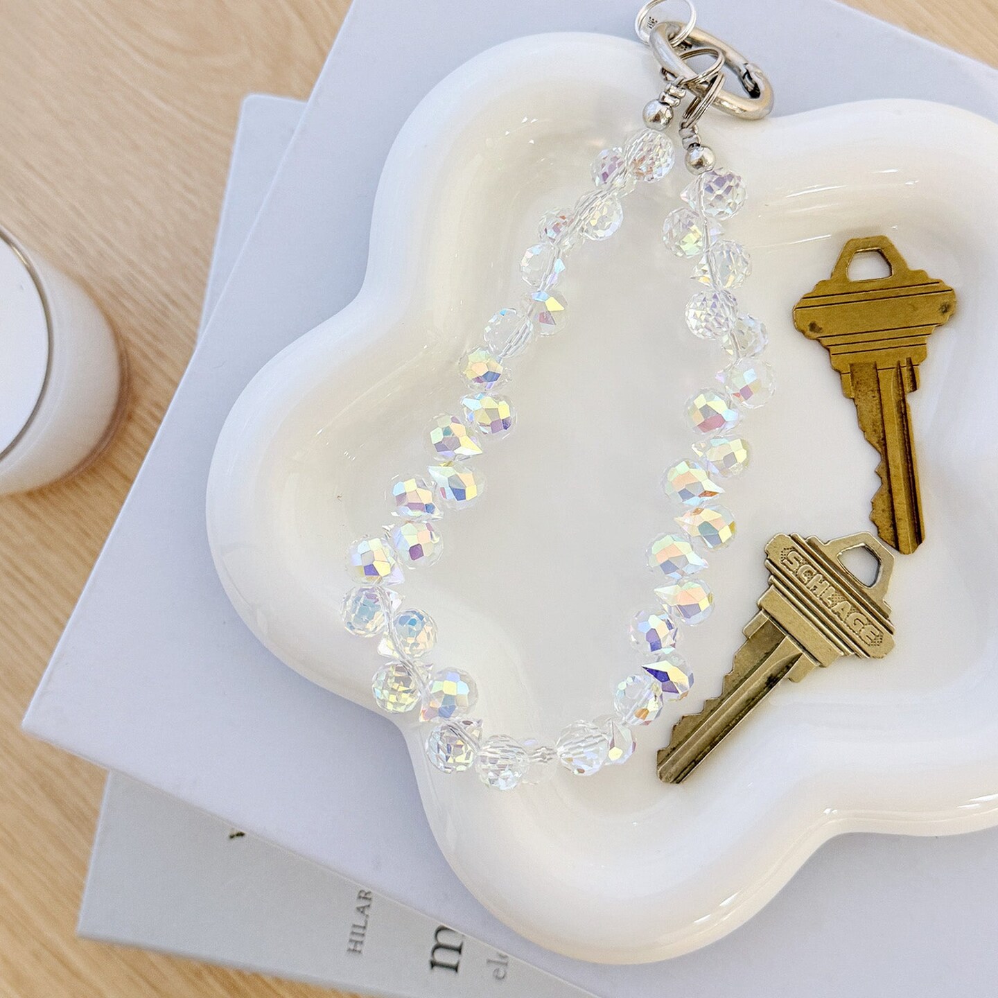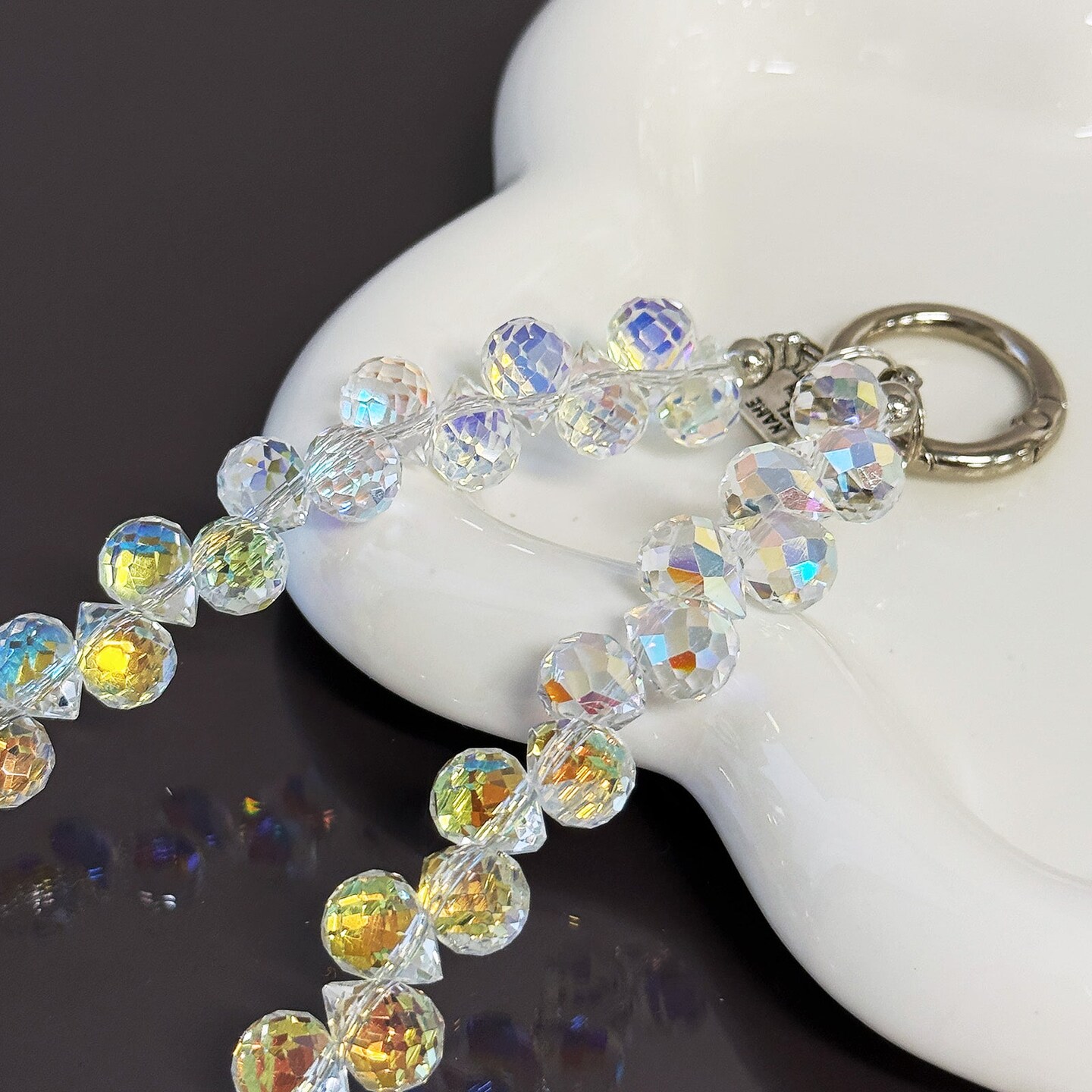 Wrapables Sparkling Beaded Cell Phone Wrist Strap, Keychain, Bag Charm with Lanyard Tether Tab, Clear Crystal