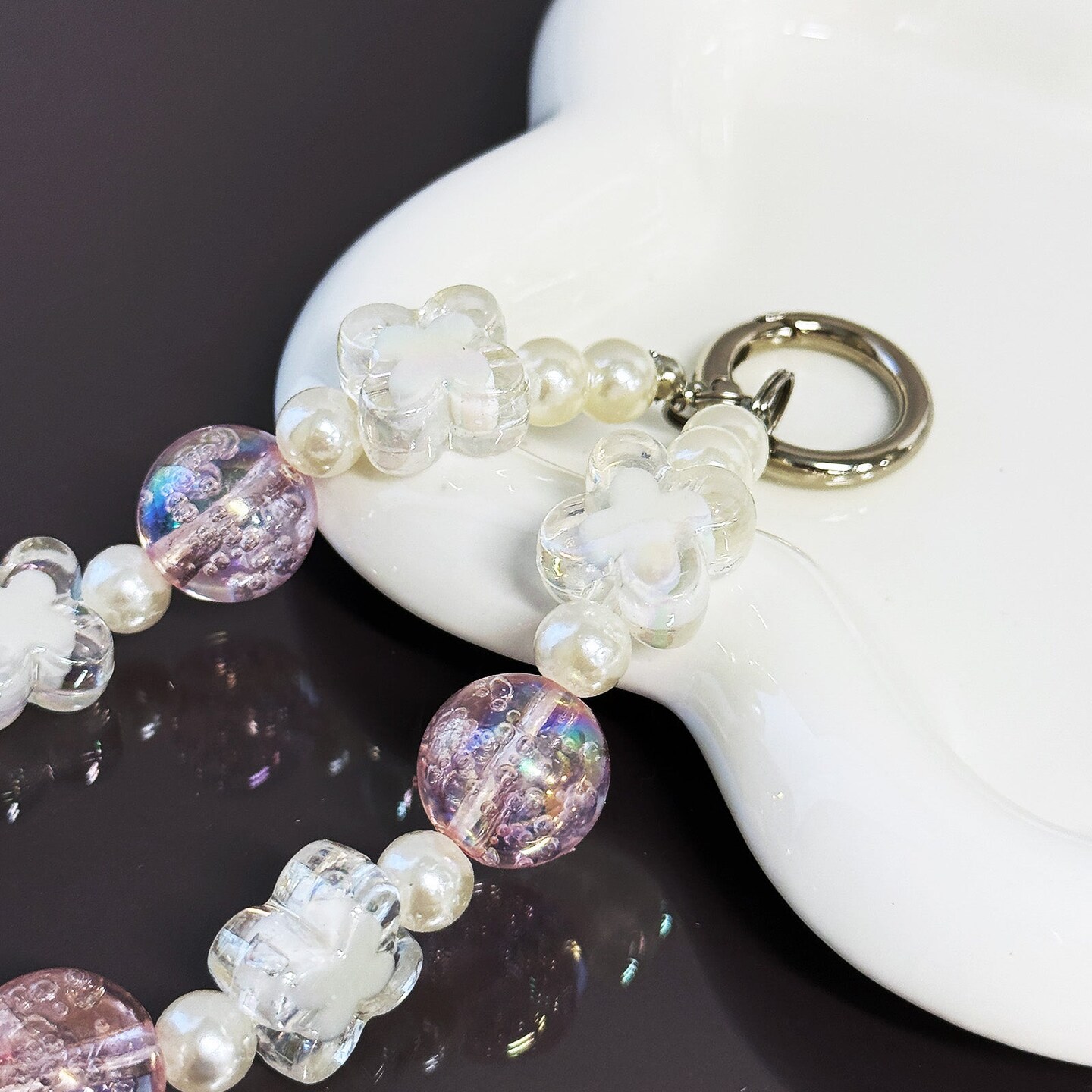 Wrapables Sparkling Beaded Cell Phone Wrist Strap, Keychain, Bag Charm with Lanyard Tether Tab, Pink Clover