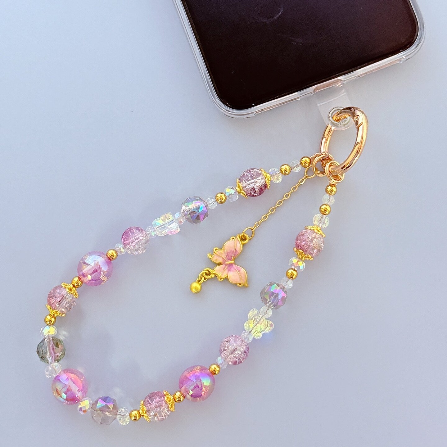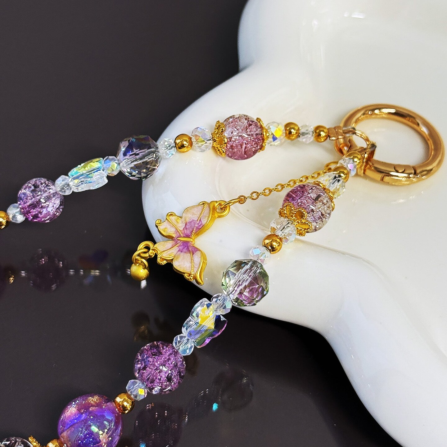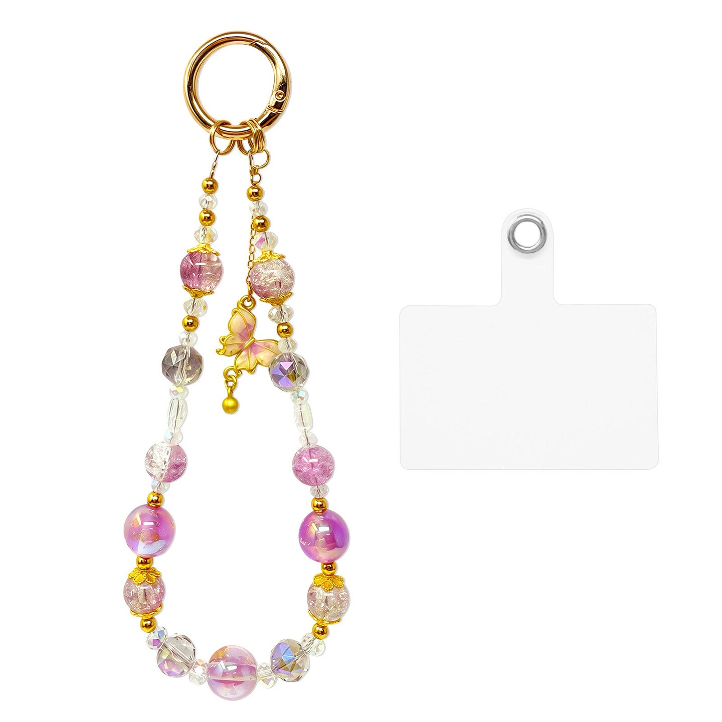 Wrapables Sparkling Beaded Cell Phone Wrist Strap, Keychain, Bag Charm with Lanyard Tether Tab, Purple Butterfly