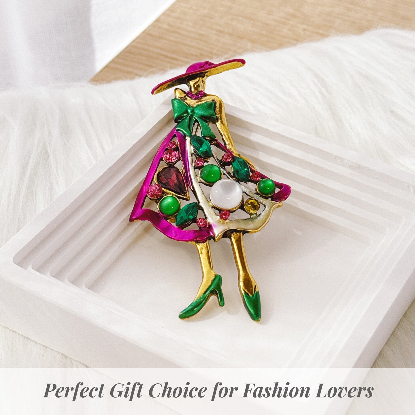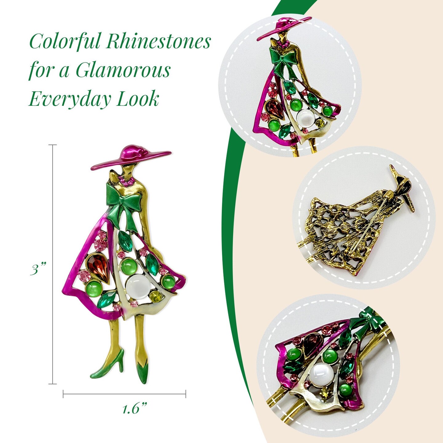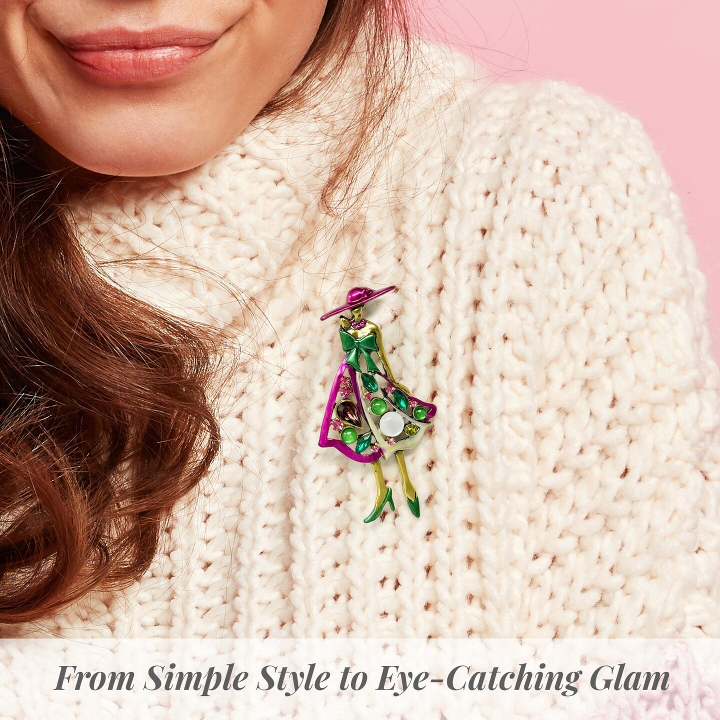 Wrapables Stylish Colorful Rhinestones Lady Brooch Pin For Lapels, Hats, Scarves, and Sweaters