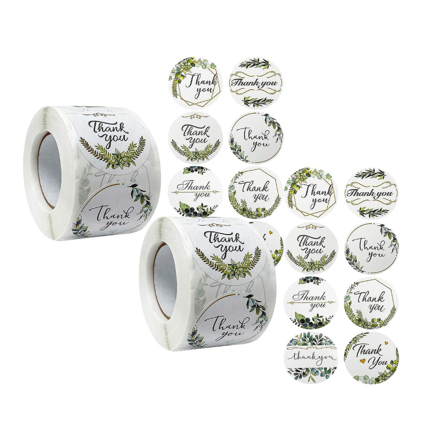 Wrapables Thank You Stickers Roll 1.5" Sealing Stickers & Labels 500 Pc Greenery Design