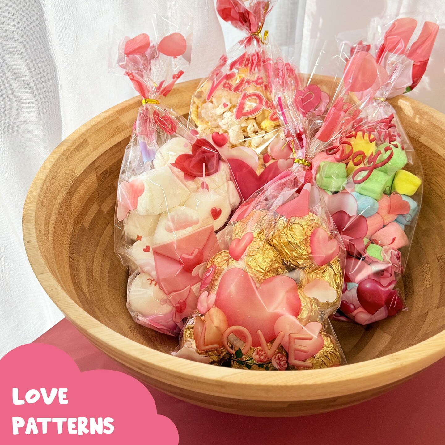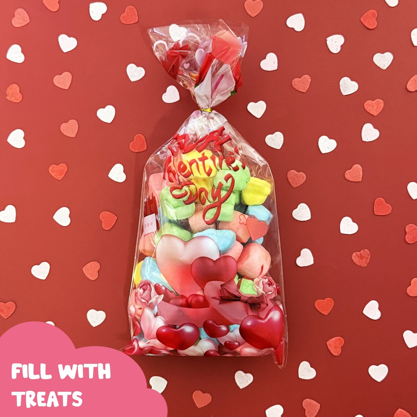 Wrapables Valentines Cellophane Treat Bags With Twist Ties for Candy, Cookies, Treats, Gifts and Party Favors (100pcs), Happy Valentines