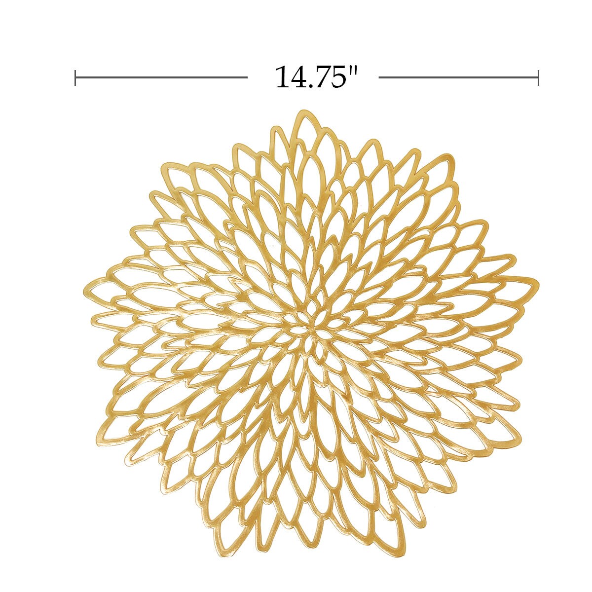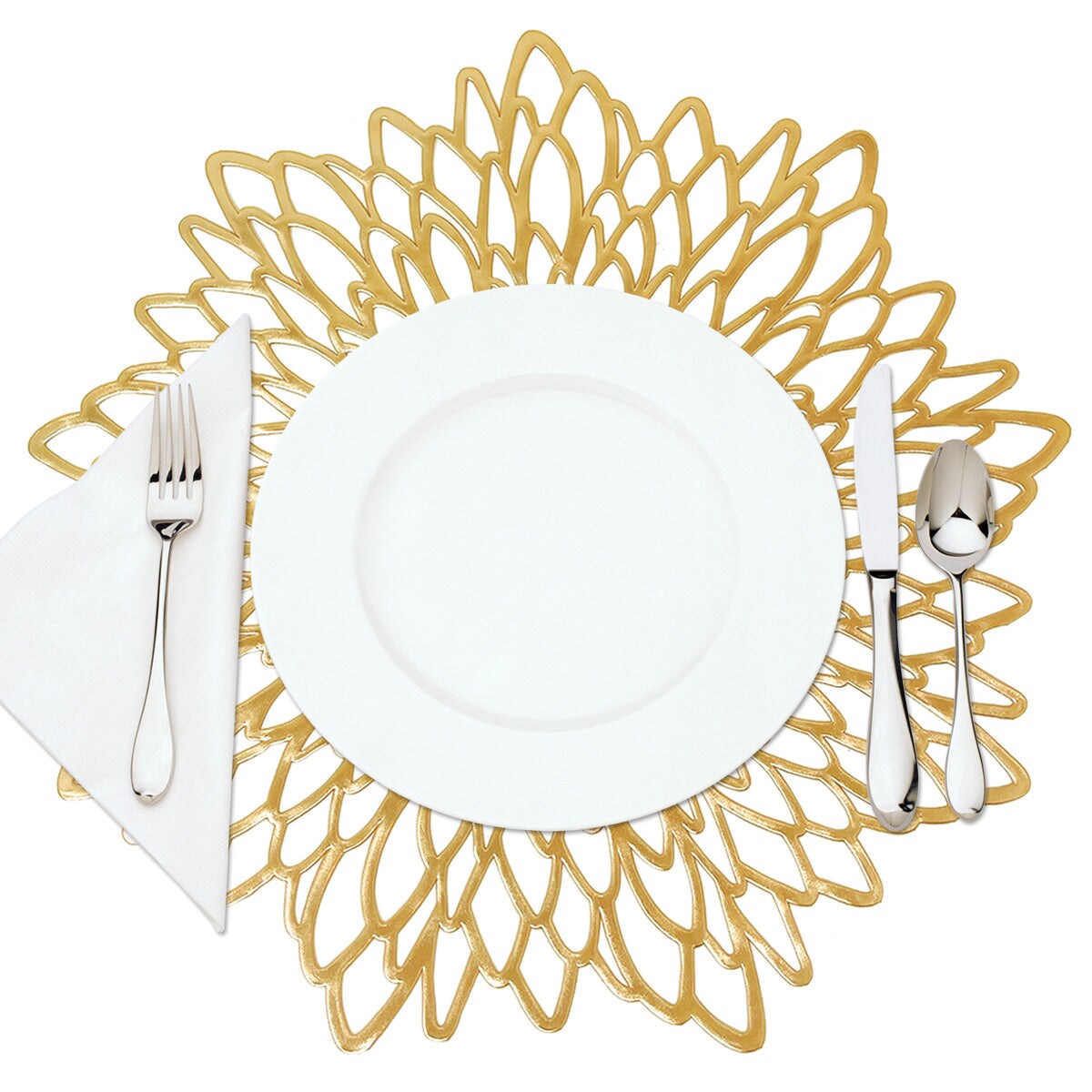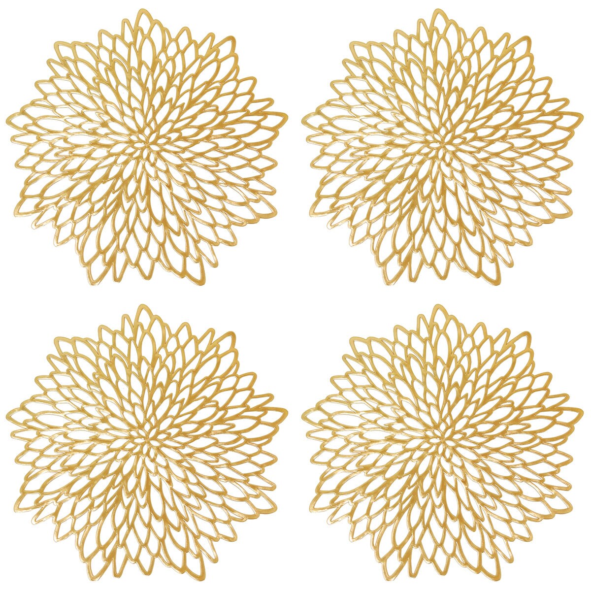 Wrapables Vinyl Metallic Colored Placemats for Weddings, Parties, Special Events (Set of 4), Gold Blossom