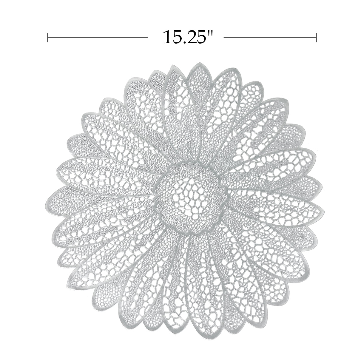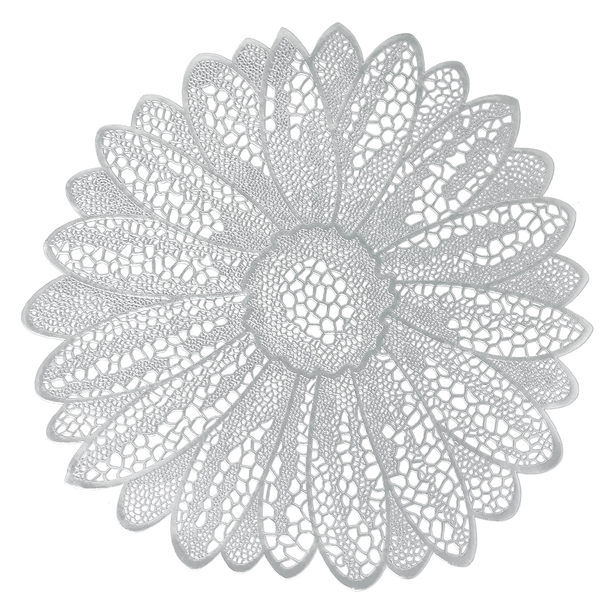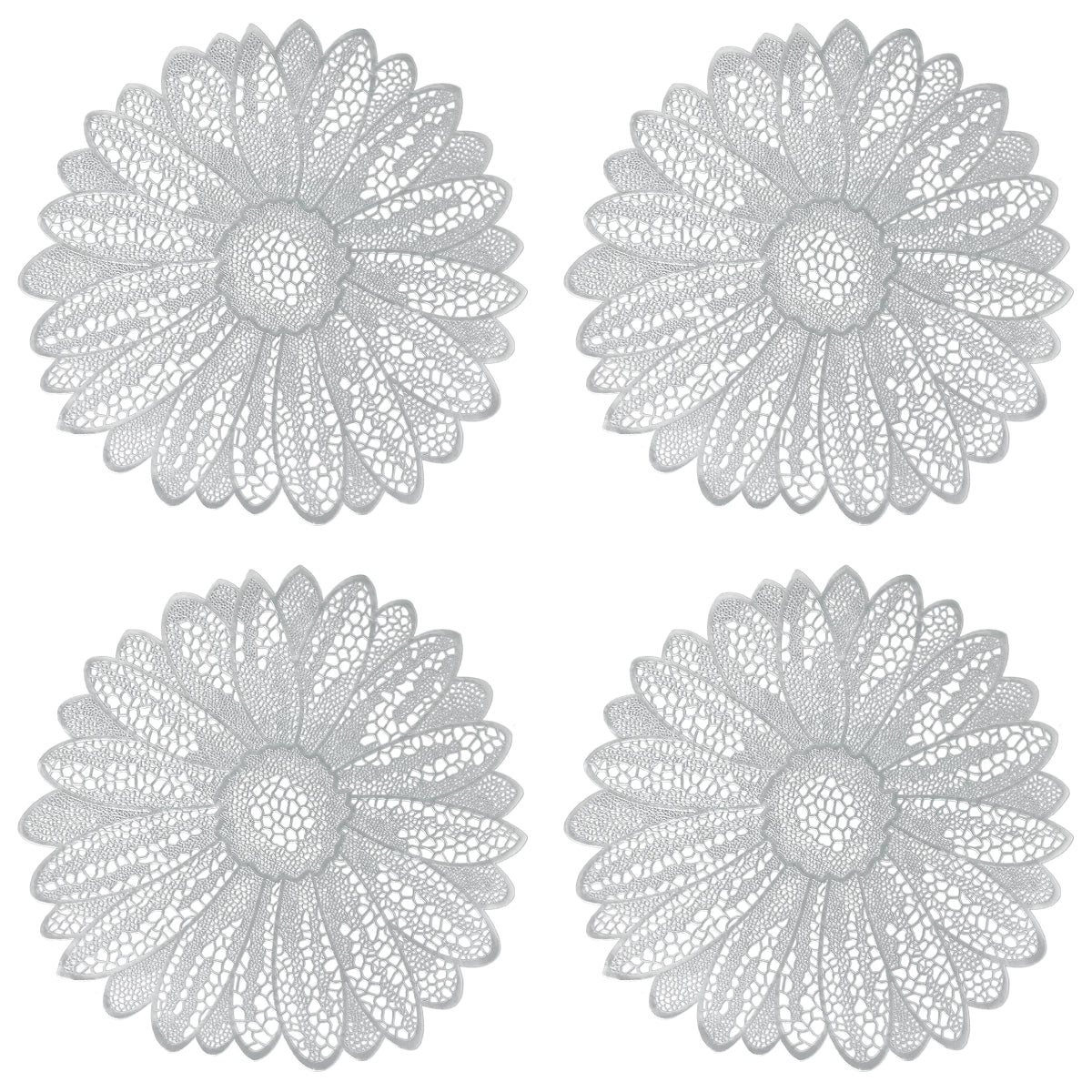 Wrapables Vinyl Metallic Colored Placemats for Weddings, Parties, Special Events (Set of 4), Silver Daisy
