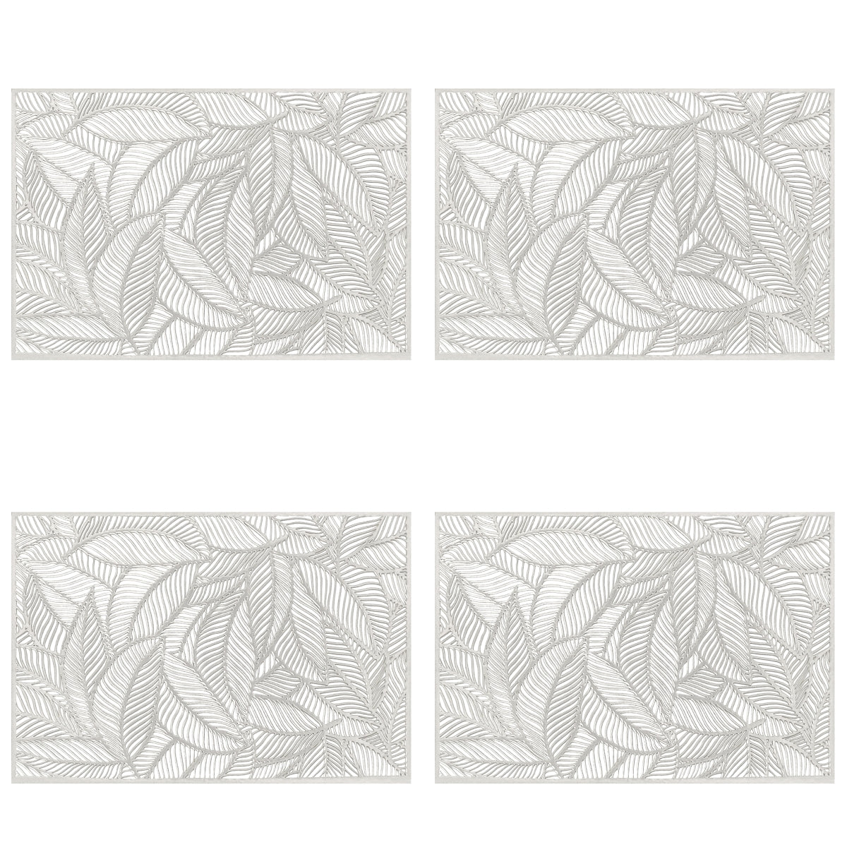 Wrapables Vinyl Metallic Colored Placemats for Weddings, Parties, Special Events (Set of 4), Silver Rectangle Leaves
