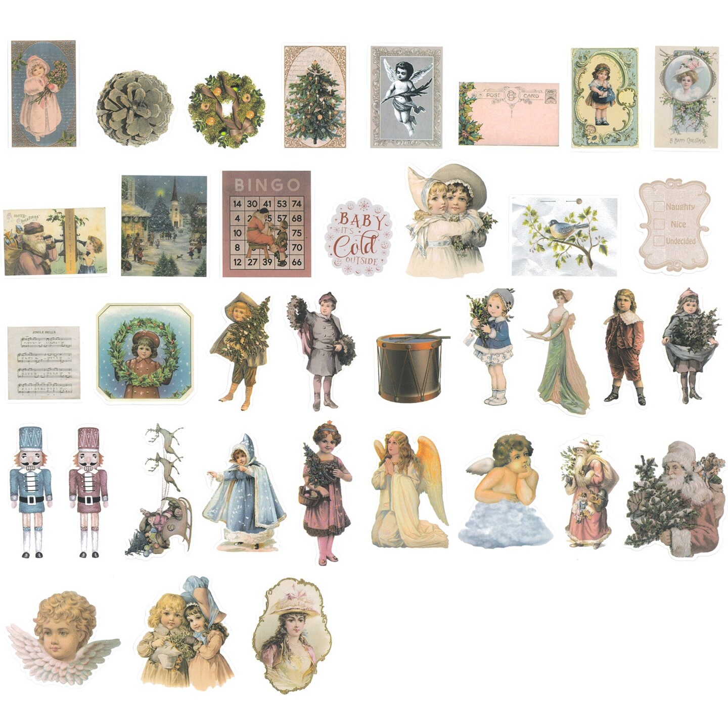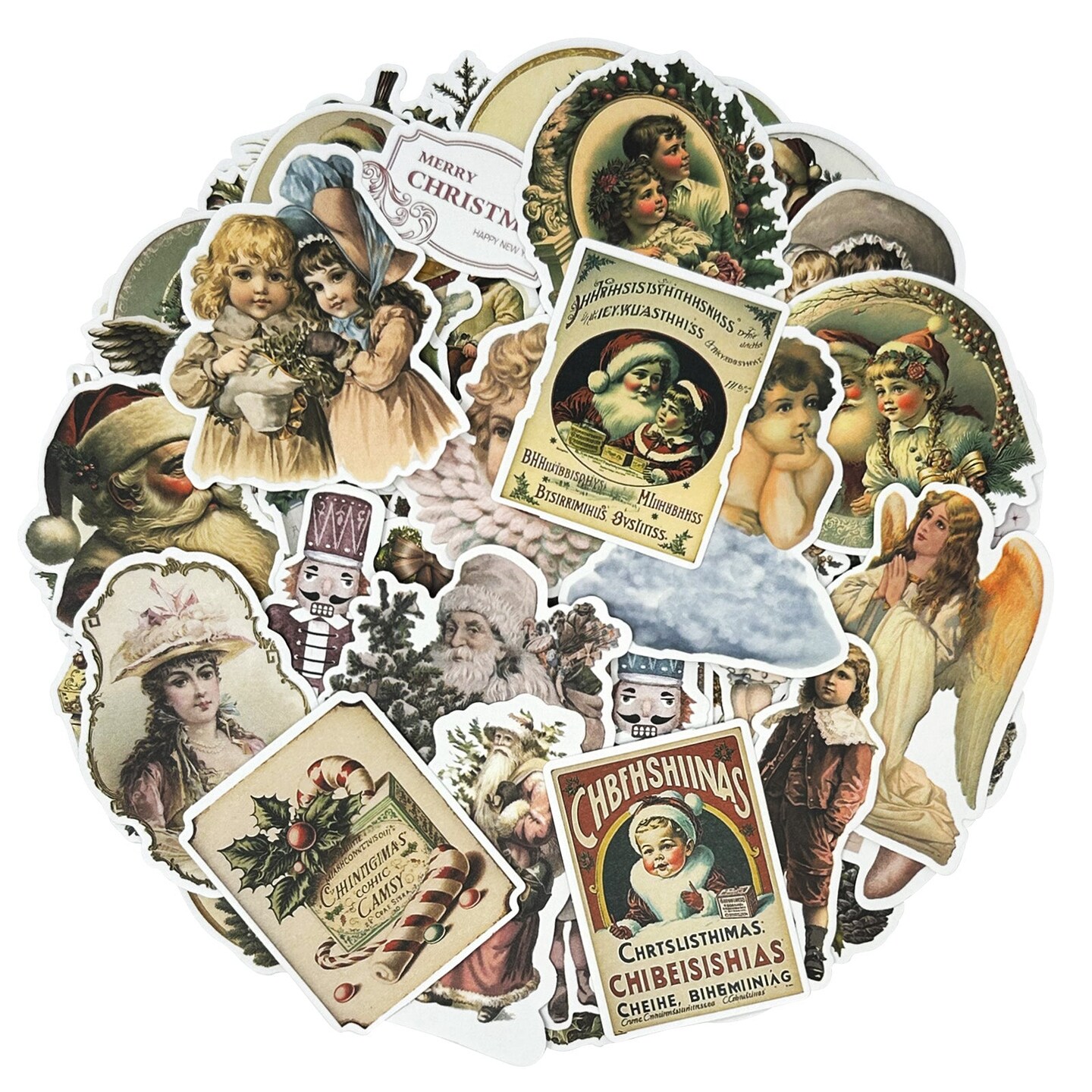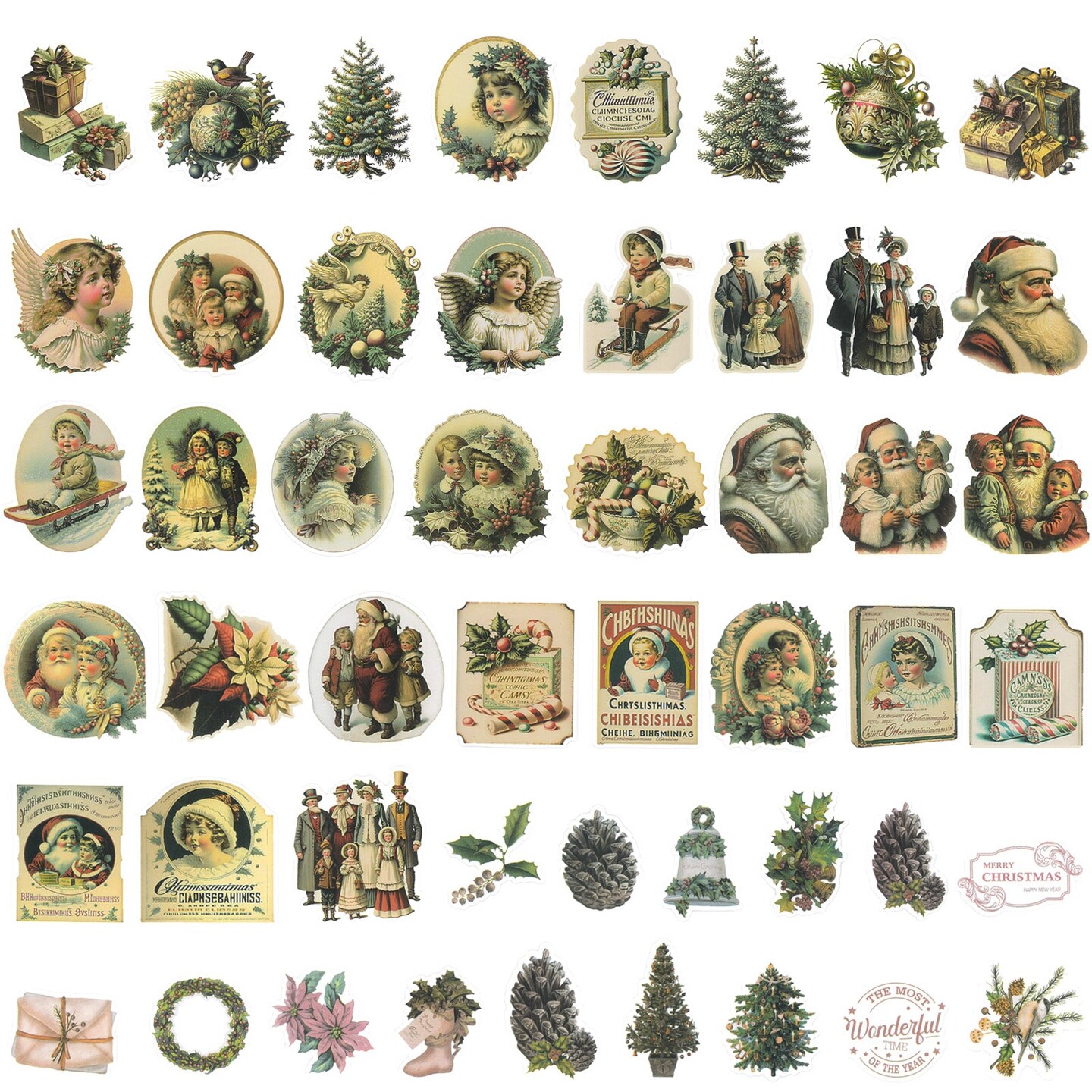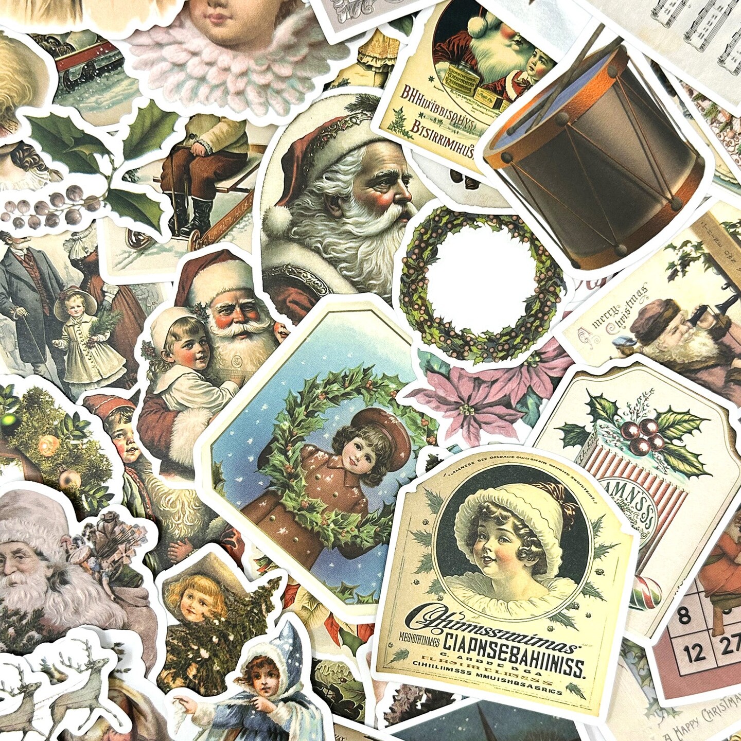 Wrapables Waterproof Christmas Vinyl Stickers for Water Bottles, Laptop, Phones, Skateboards, Decals for Teens, 86pcs Vintage Xmas