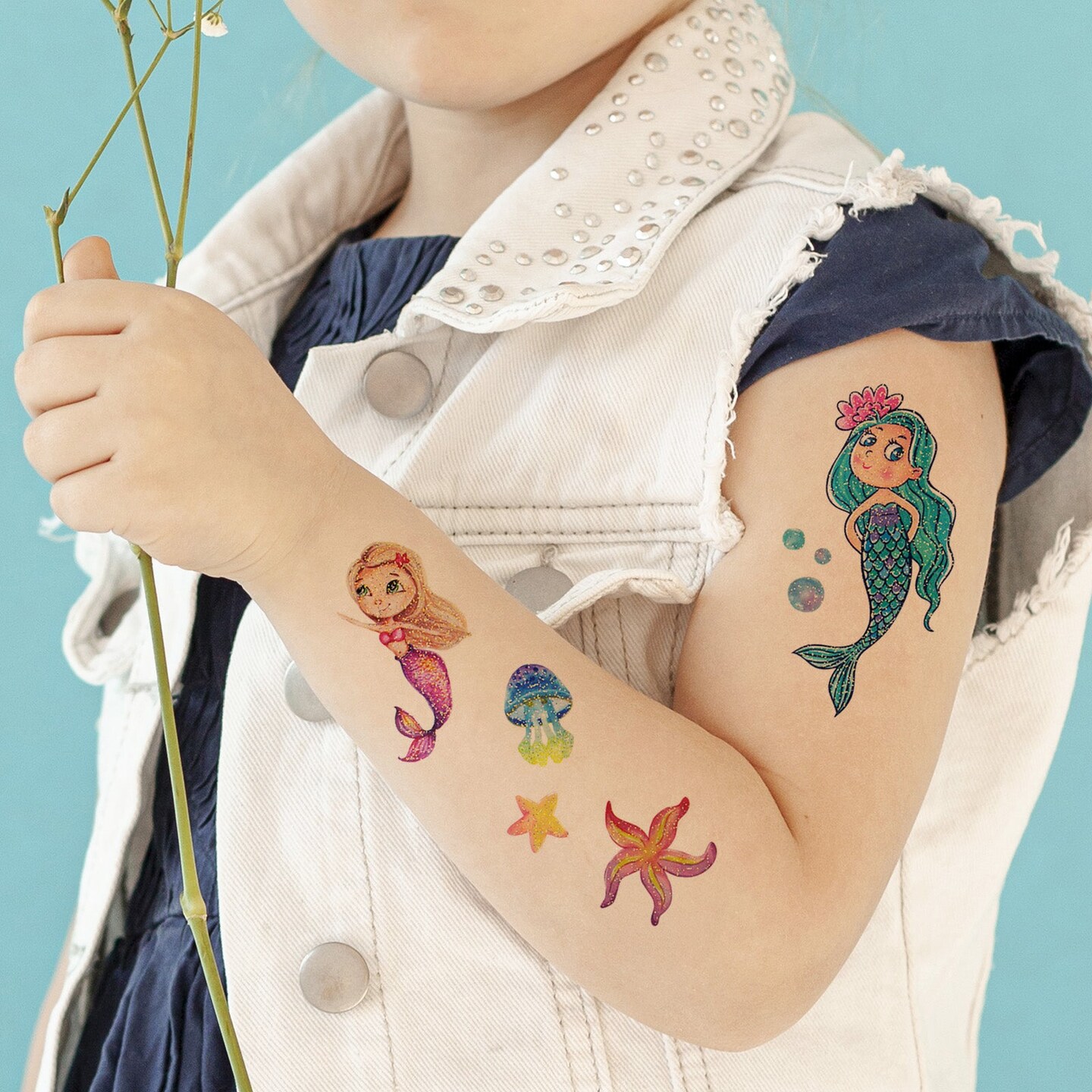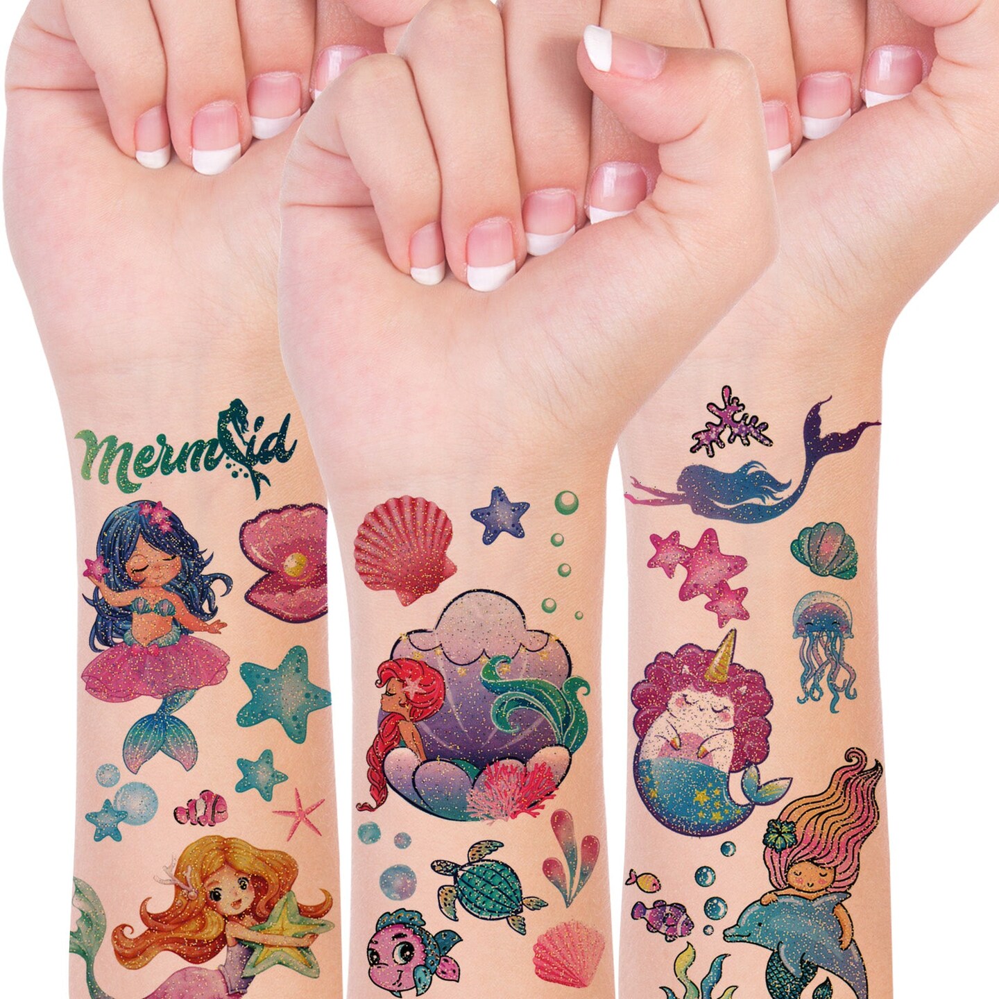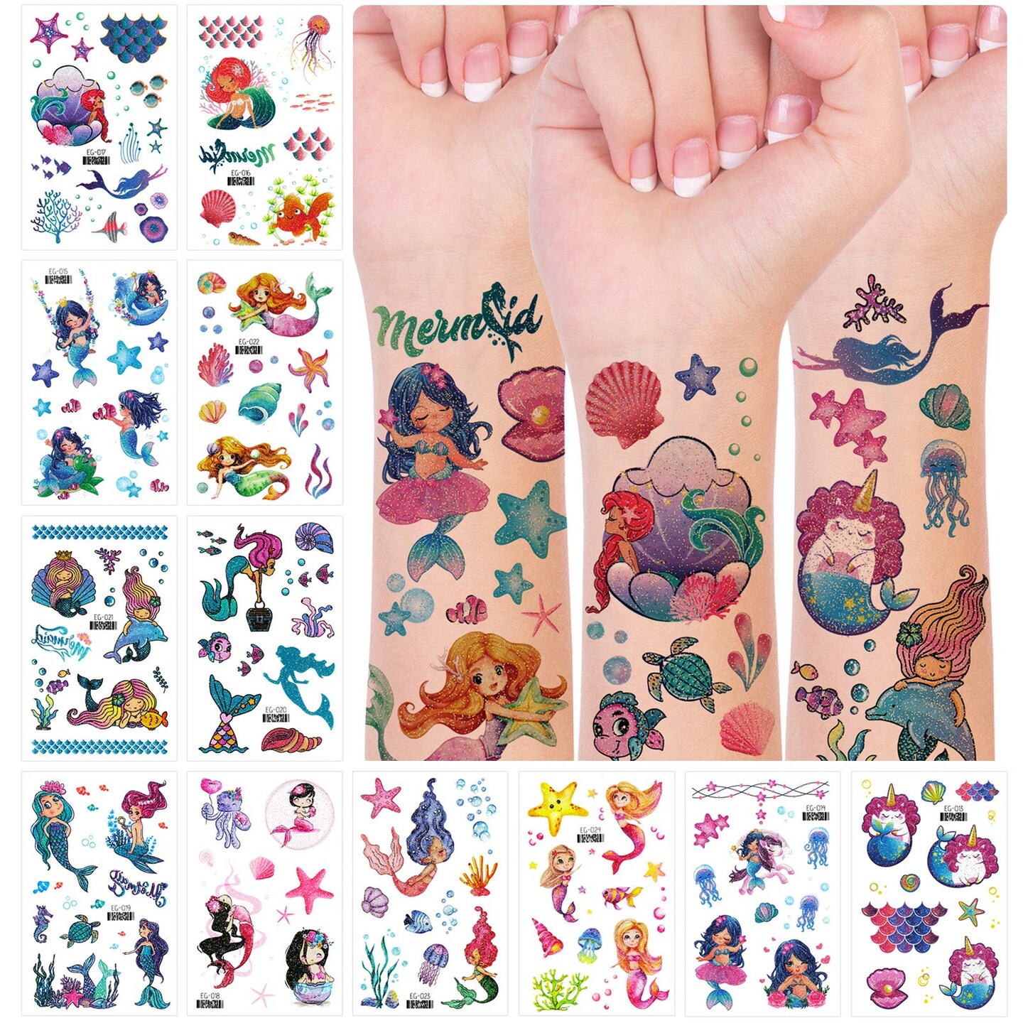 Wrapables Waterproof Glitter Temporary Tattoos, Birthday Party Favors and Supplies, Goodie Bag Fillers, 12 Sheets Mermaids