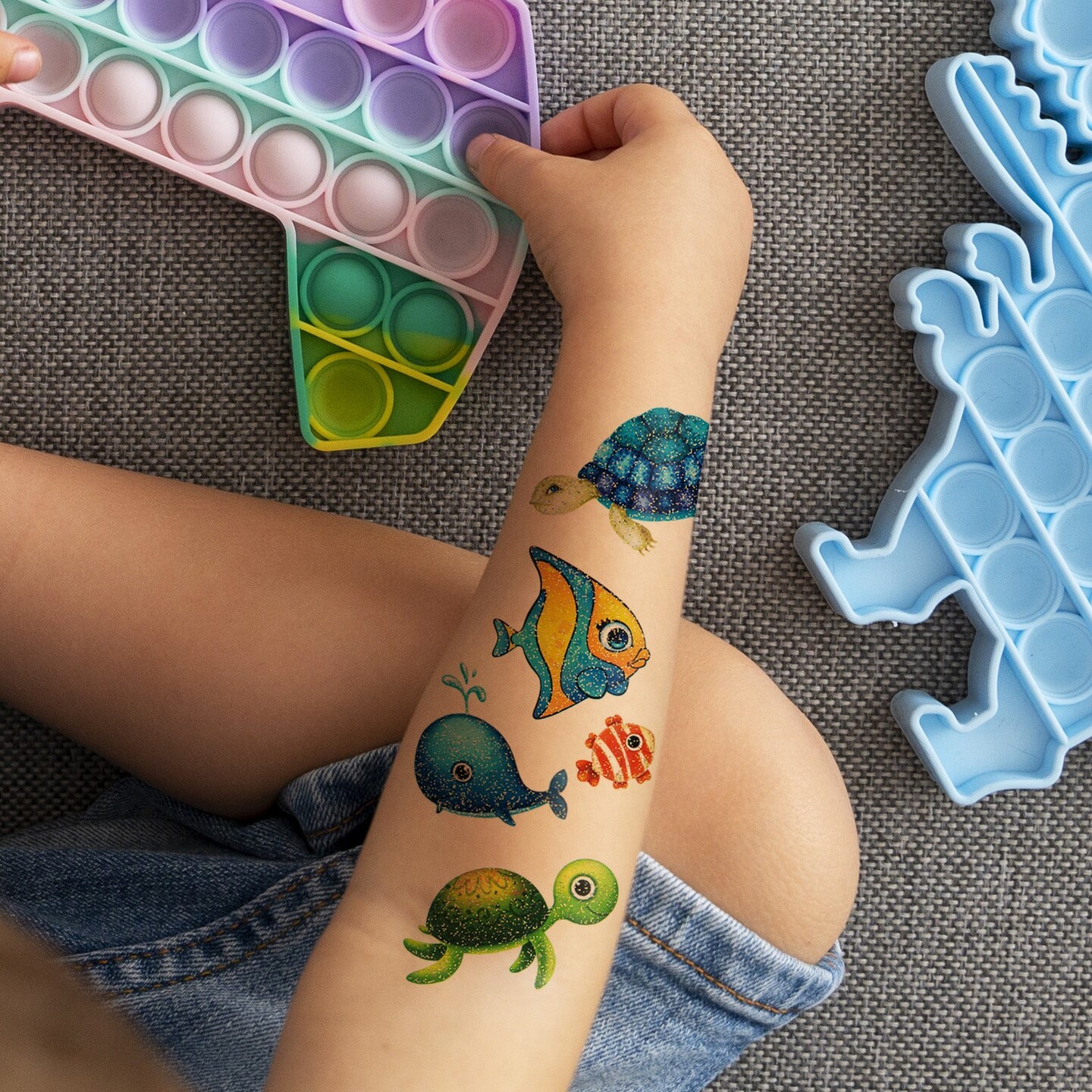 Wrapables Waterproof Glitter Temporary Tattoos, Birthday Party Favors and Supplies, Goodie Bag Fillers, 12 Sheets Ocean Animals