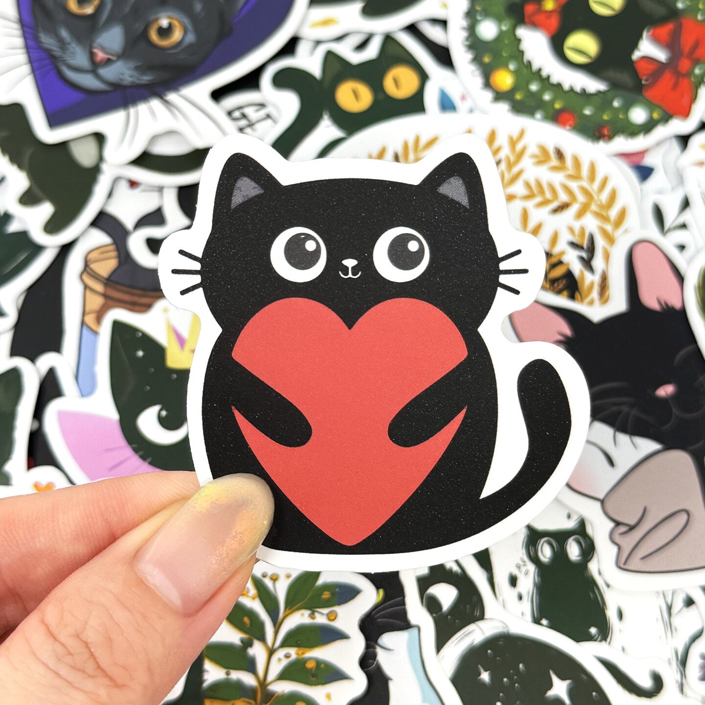 Wrapables Waterproof Vinyl Stickers for Water Bottles, Laptop, Phones, Skateboards, Decals for Teens, 100pcs, Black Cats