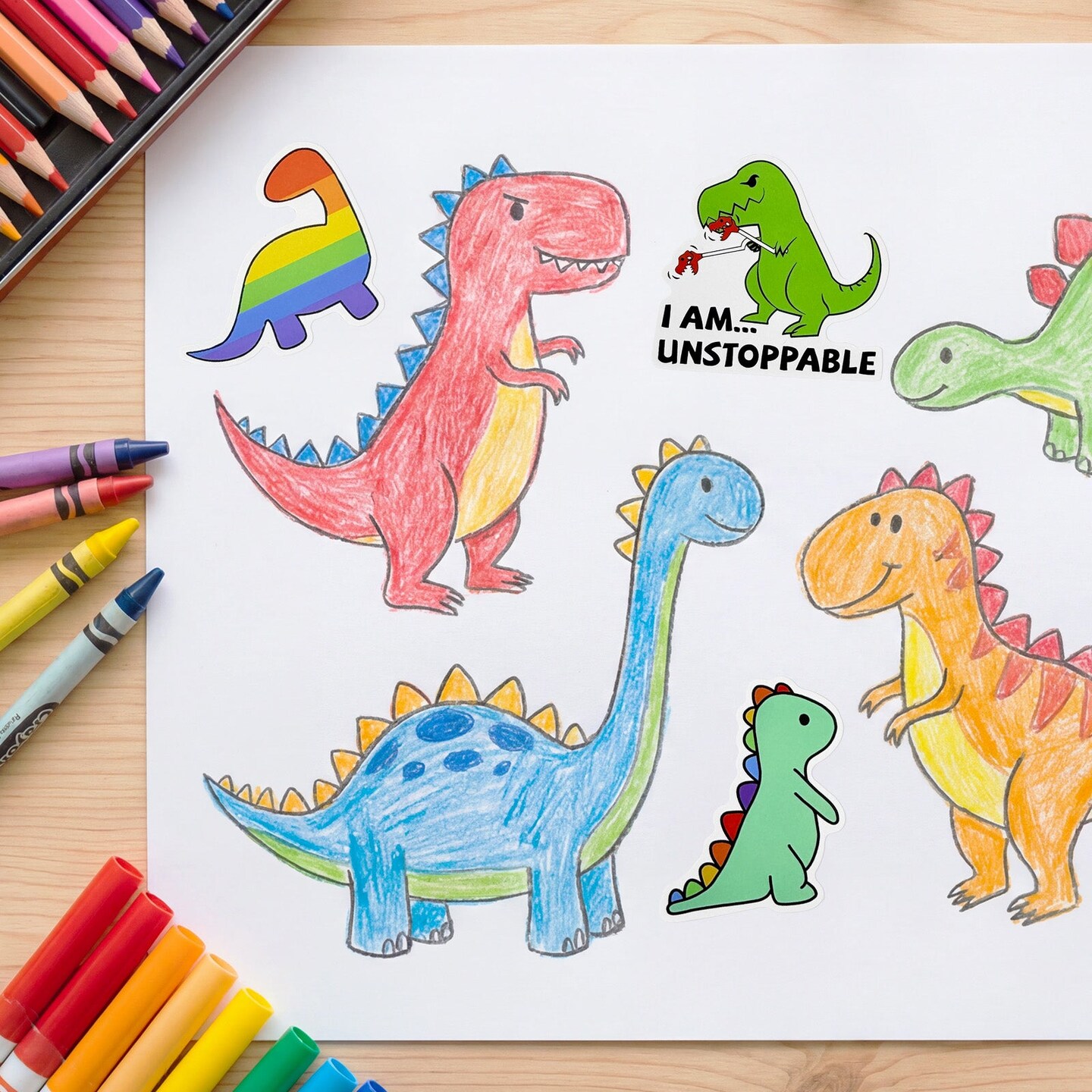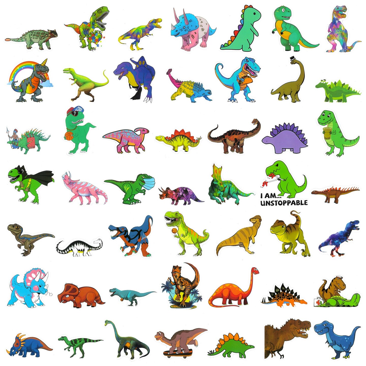 Wrapables Waterproof Vinyl Stickers for Water Bottles, Laptop, Phones, Skateboards, Decals for Teens, 100pcs, Dino Fun