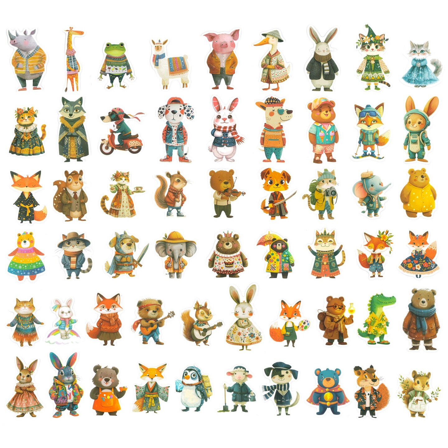 Wrapables Waterproof Vinyl Stickers for Water Bottles, Laptop, Phones, Skateboards, Decals for Teens, 100pcs, Rustic Creatures
