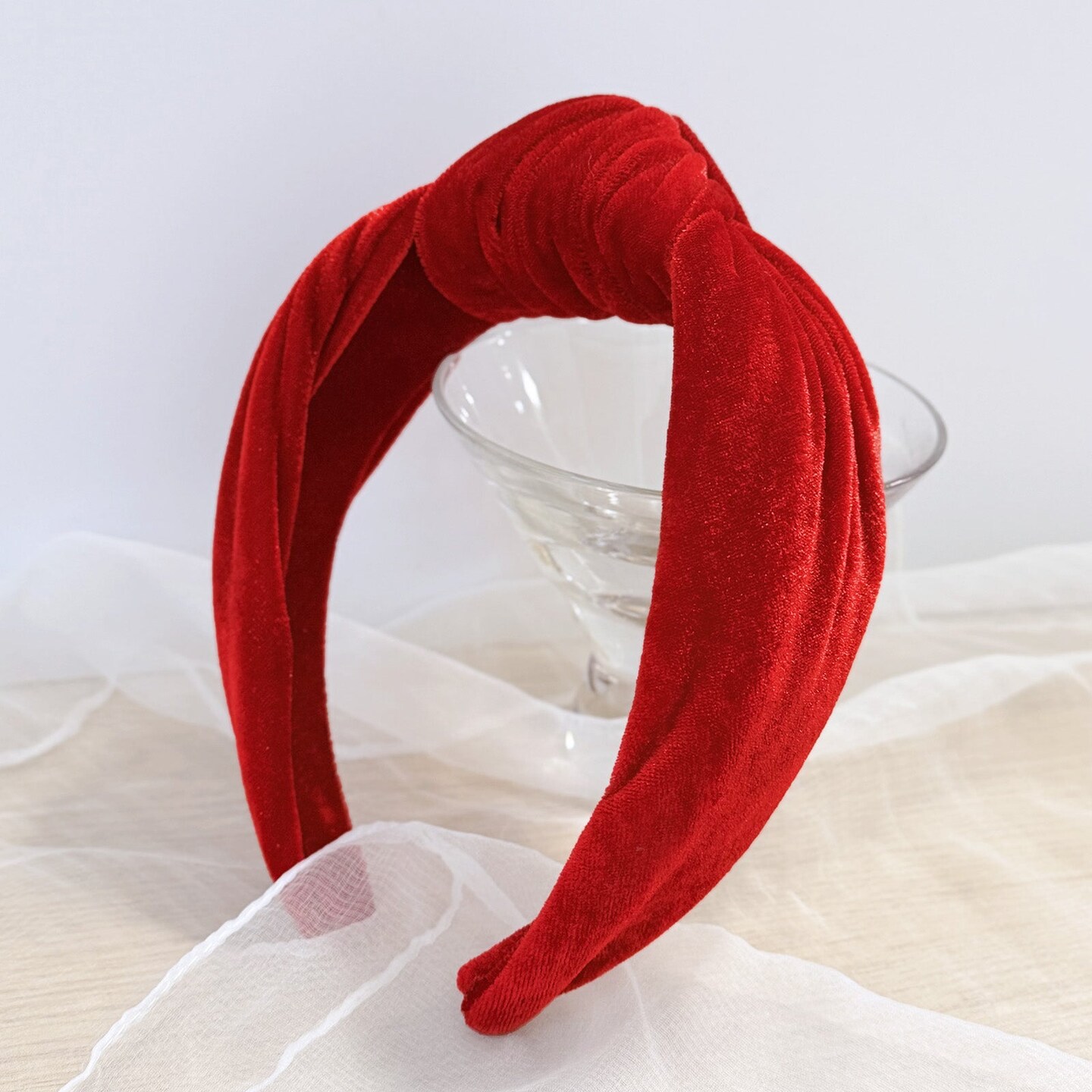Wrapables Wide Knotted Velvet Headbands, Top Knot Velvet Headbands for Women and Girls, Red