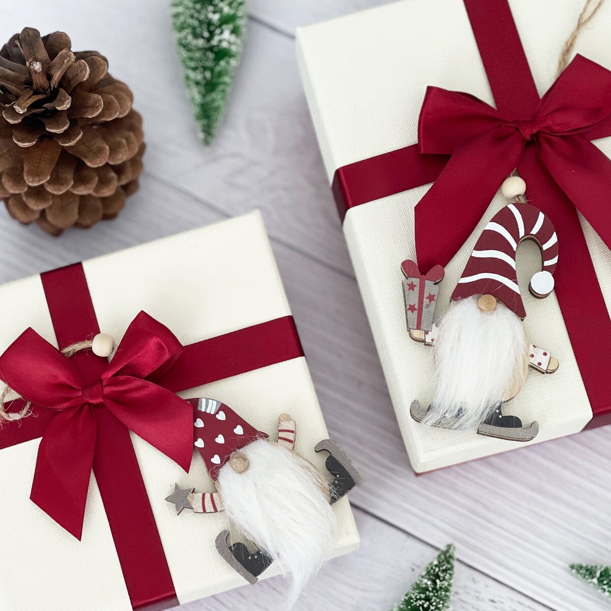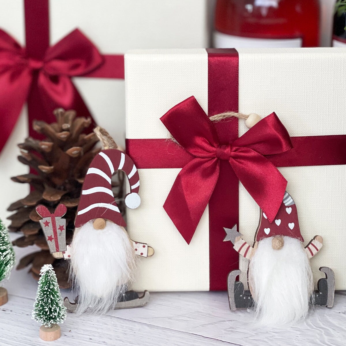 Wrapables Wooden Gnomes Hanging Christmas Tree Ornaments, 6pcs Fluffy Beard