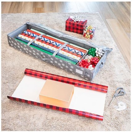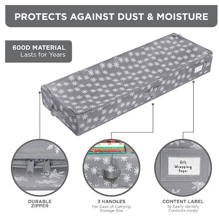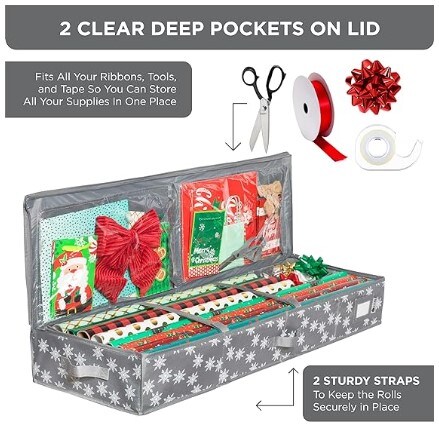 Wrapping Paper Storage Bin - Holds up to 27 Rolls 1 3/8" Diam. - Gift Wrap Organiser Bags, Wrapping Paper Rolls, Ribbon, and Bows for Underbed - Under the Bed- 600D Durable Material - Rolls Up to 40"