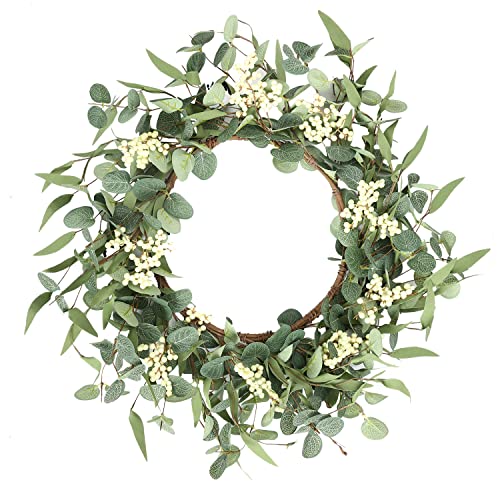 Wreaths for Front Door 20'' Eucalyptus Wreath, Spring Summer Green Wreath, Door Green Wreath for Home Porch Window Wall Farmhouse Home Decor Indoor Outdoor Summer Fall All Seasons