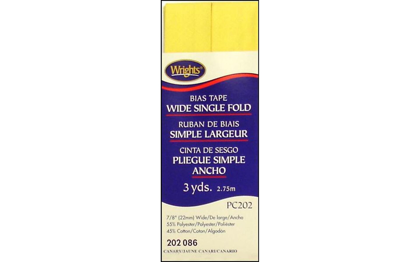 Wrights Bias Tape Wide Single Fold 3yd Canary